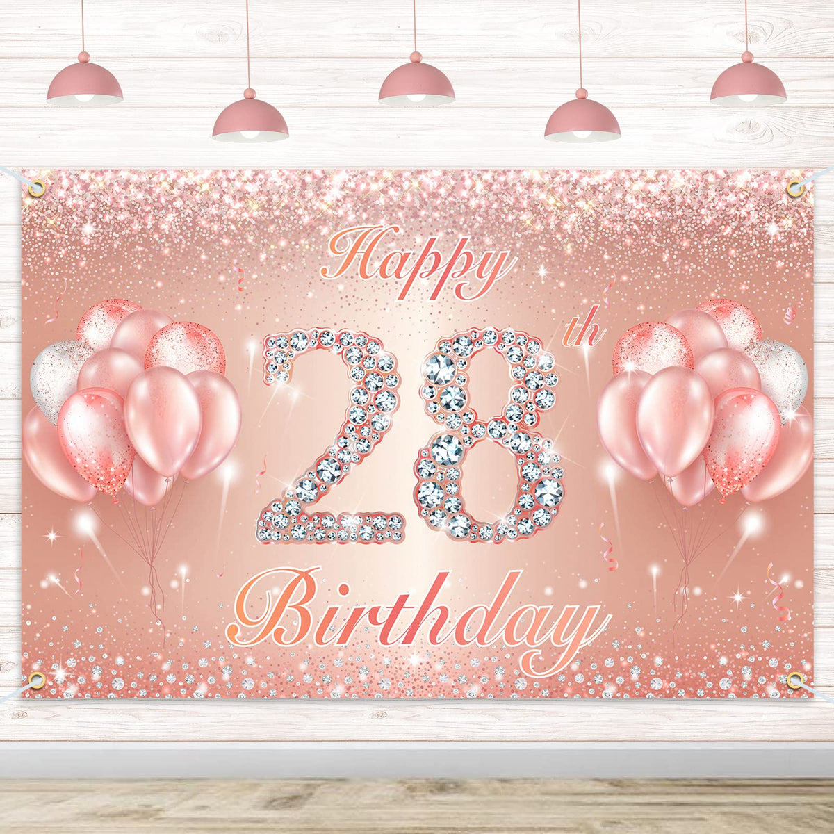 Happy 28Th Birthday Banner Backdrop 28 Birthday Party Decorations Supplies For Women Or Men Rose Gold 4 X 6Ft