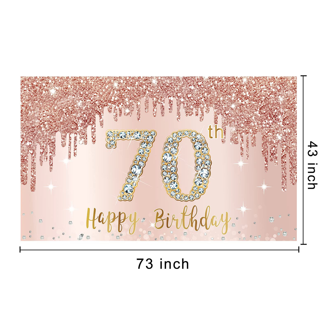 Happy 70Th Birthday Banner Backdrop Decorations For Women, Rose Gold 70 Birthday Party Sign Supplies, Pink 70 Year Old Birthday