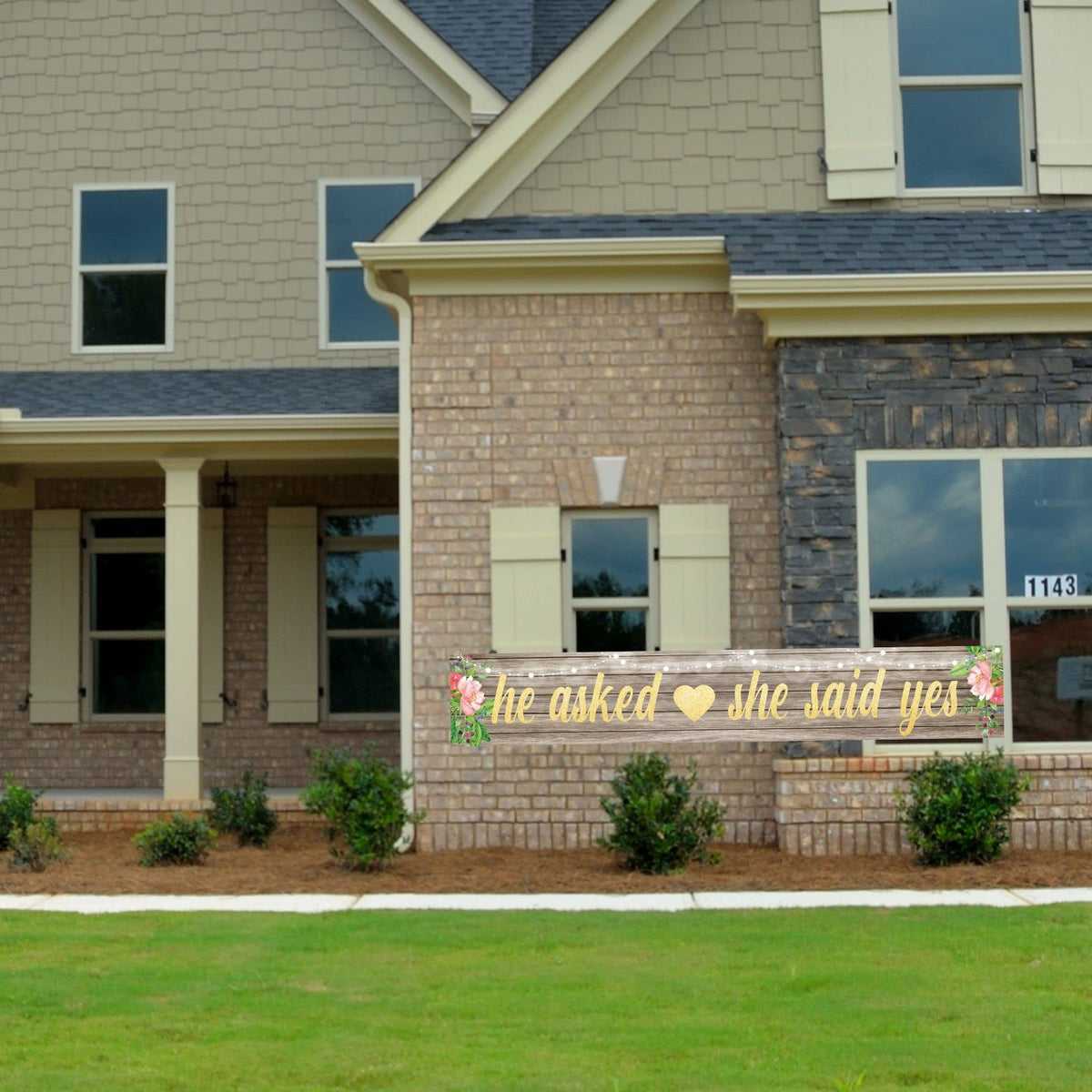 He Asked She Said Yes Backdrop Banner Decorations, Large Wedding Engagement Party Sign Supplies, Bridal Shower Photo Booth Props