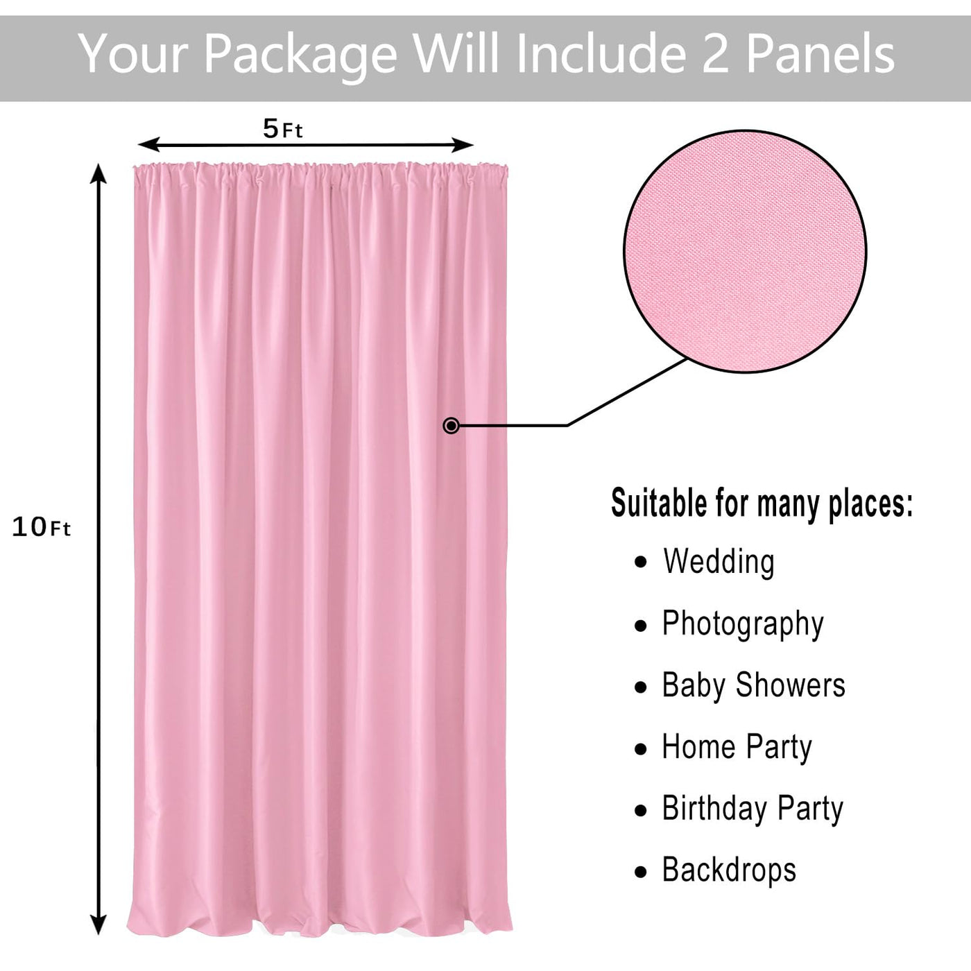 Q: What are the dimensions of the Hiasan Pink Backdrop Curtains?A: The Hiasan Pink Backdrop Curtains measure 5 feet in width and 10 feet in height, making them ideal for various events.