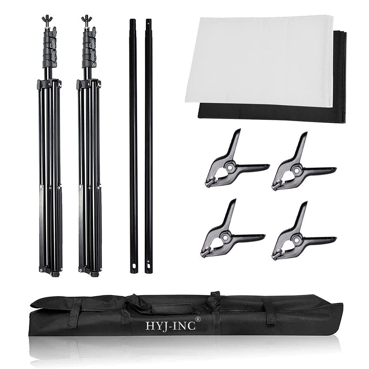 Hyj Inc Photo Background Support System With 8.5 X 10Ft Backdrop Stand Kit, 100% Cotton Muslin Backdrop (White Black),Clamp, Car