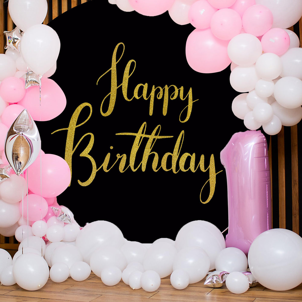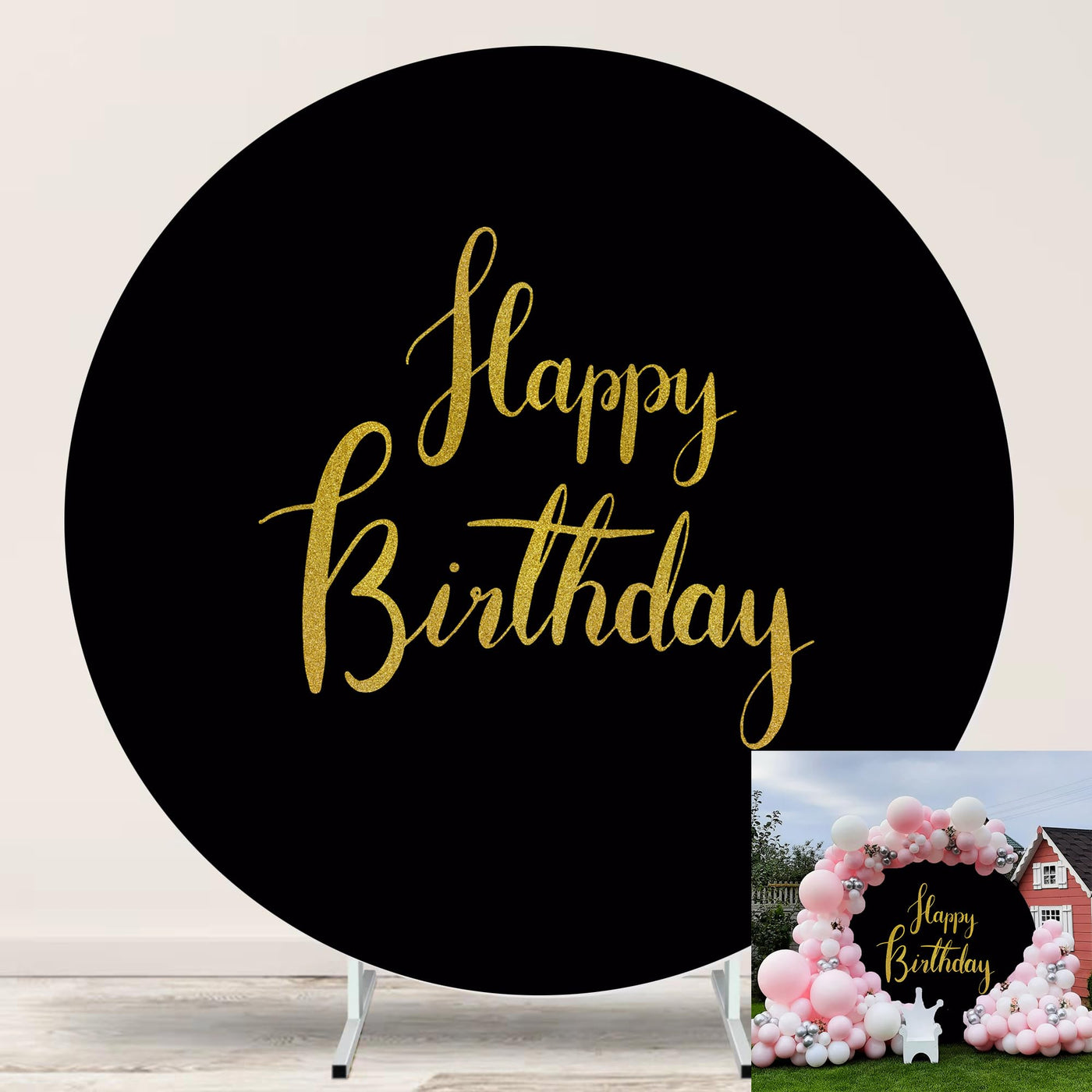 Jditngp 6.5Ftx6.5Ft Gold Happy Birthday Sign Round Backdrop Cover,Black Round Backdrop Cover Happy Birthday Party Decoration Bla