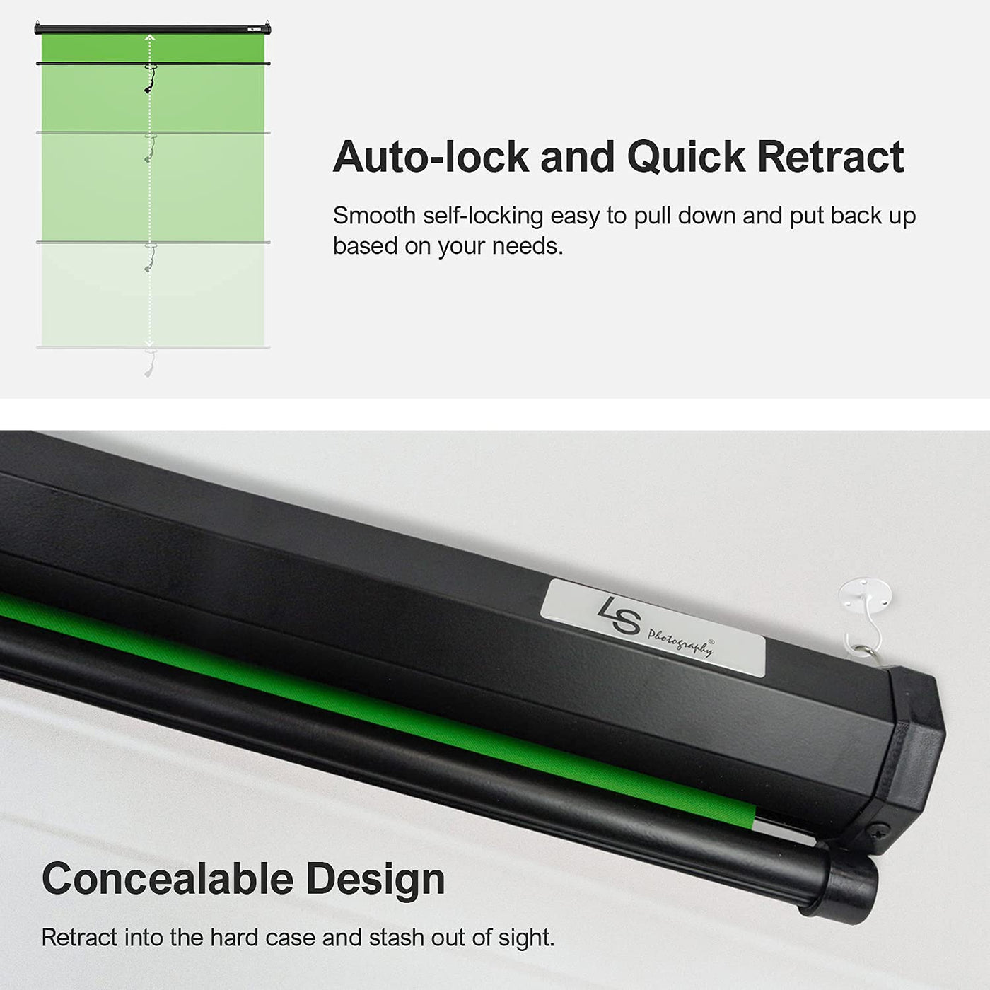 ?? ? Package Contents ? [1 X] 5.1 X 6.2 Ft. / 62 X 74 In. (W X H) Green Retractable Mountable Screen | ?? ? Cleanedge Chroma Key ? Portable Chroma Key Screen Optimized For Easy Background Removal. | ?? ? Fast And Easy To Set Up ? Don'T Waste Precious Time. It Just Needs A Few Minutes. Lift And Let The X-Frame Automatically Lock The Screen In Place. | ?? ? Perfect For Any Audience ? Super Easy To Remove The Background And Changing Different Shooting Scenes Freely. | ?? ? Easy Storage ? It Can Fold Up Small Enough To Put Underneath Bed, Couch, Closet Or Whatever.