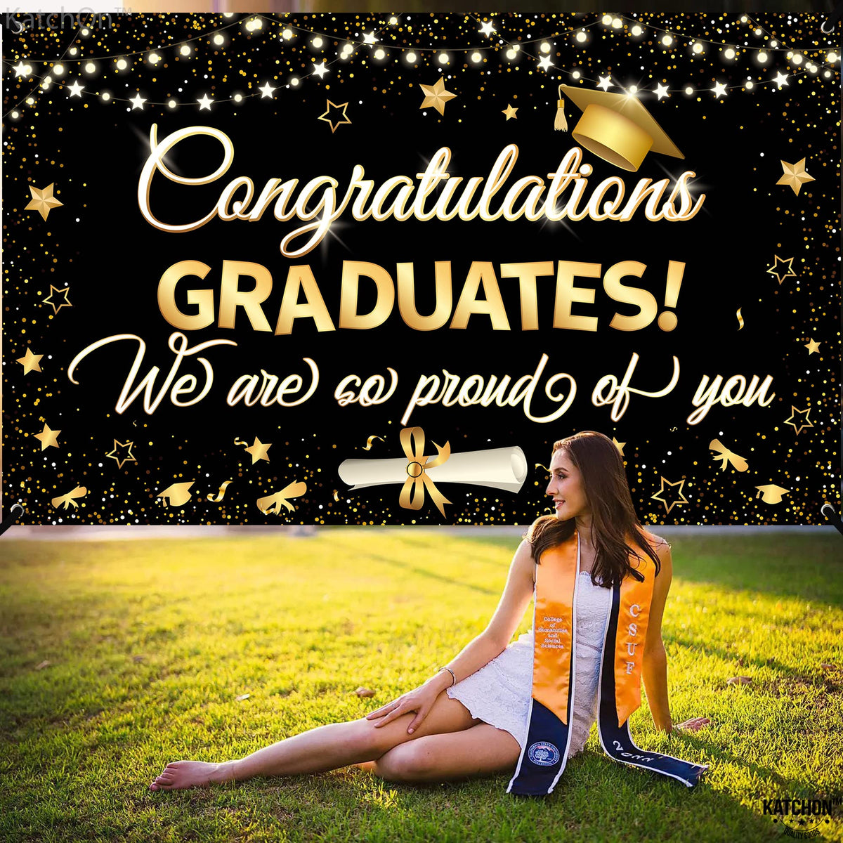 Katchon, Congratulations Graduate Banner 2024 Large 72X44 Inch | Black And Gold Graduation Banner, Graduation Decorations Clas