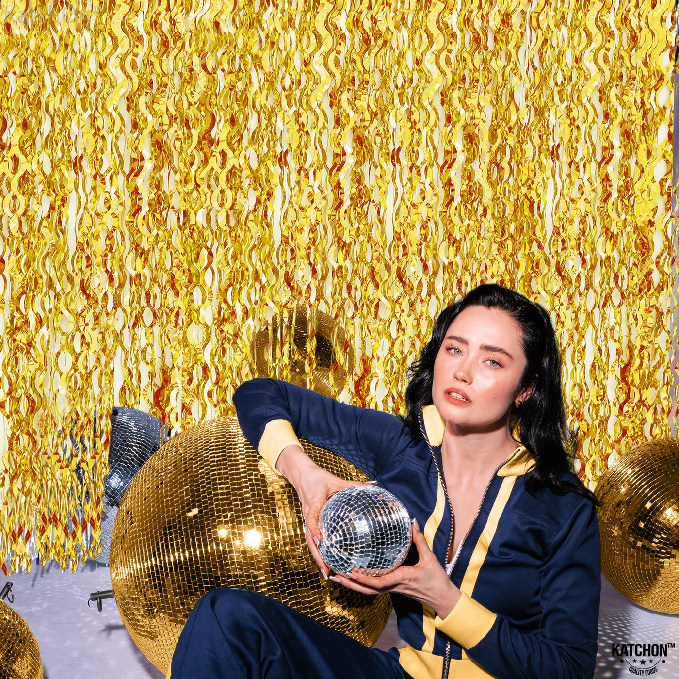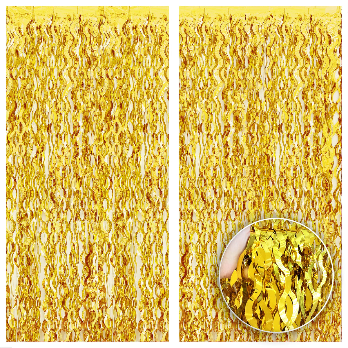 Katchon, Large Wave Gold Backdrop Curtain 3.2X6.5 Feet, Pack Of 2 | Gold Streamers For Happy New Year Backdrop | Gold Fringe B