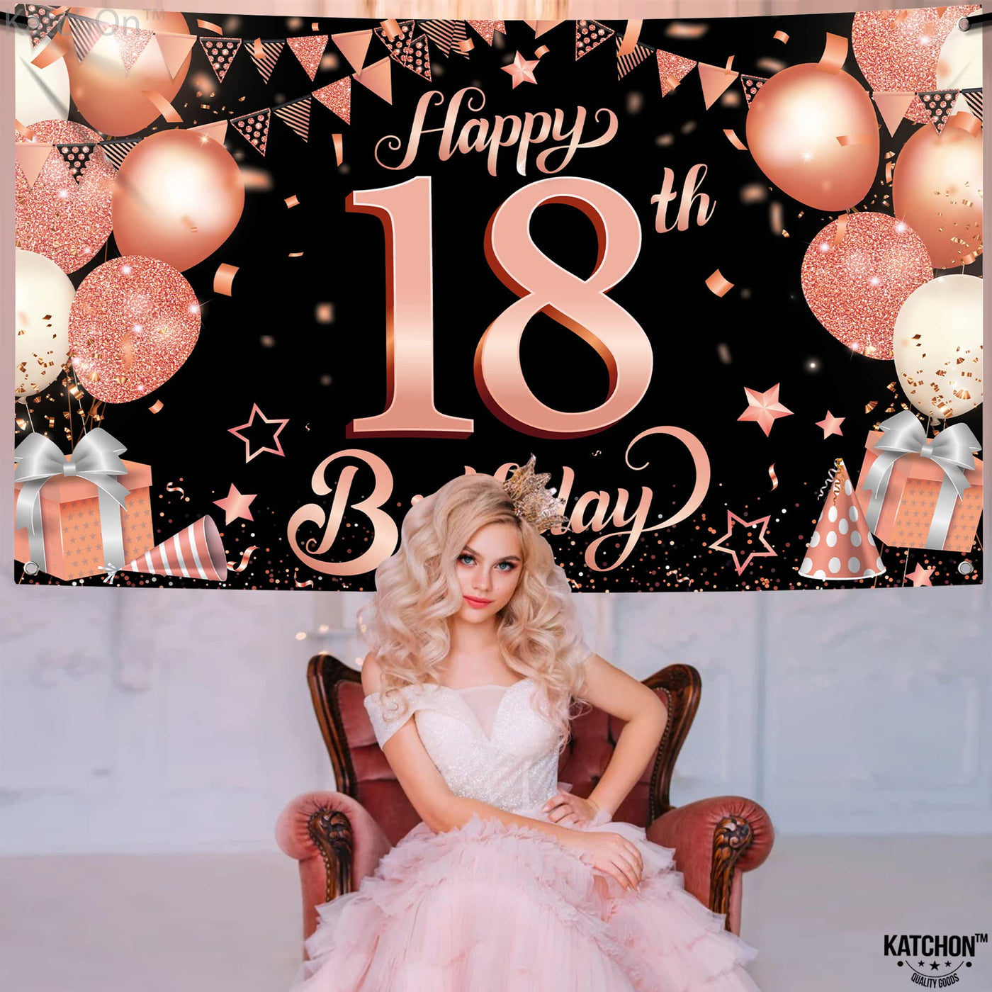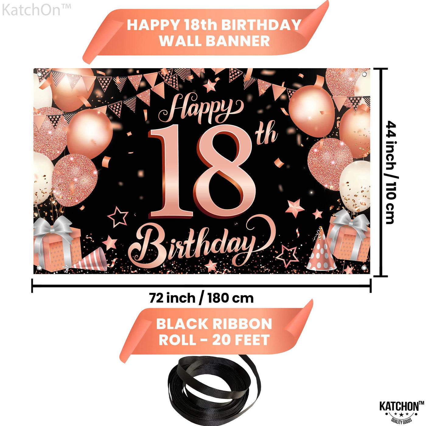 Katchon, Rose Gold Happy 18Th Birthday Banner Large, 72X44 Inch | Rose Gold And Black Happy 18Th Birthday Decorations For Girl