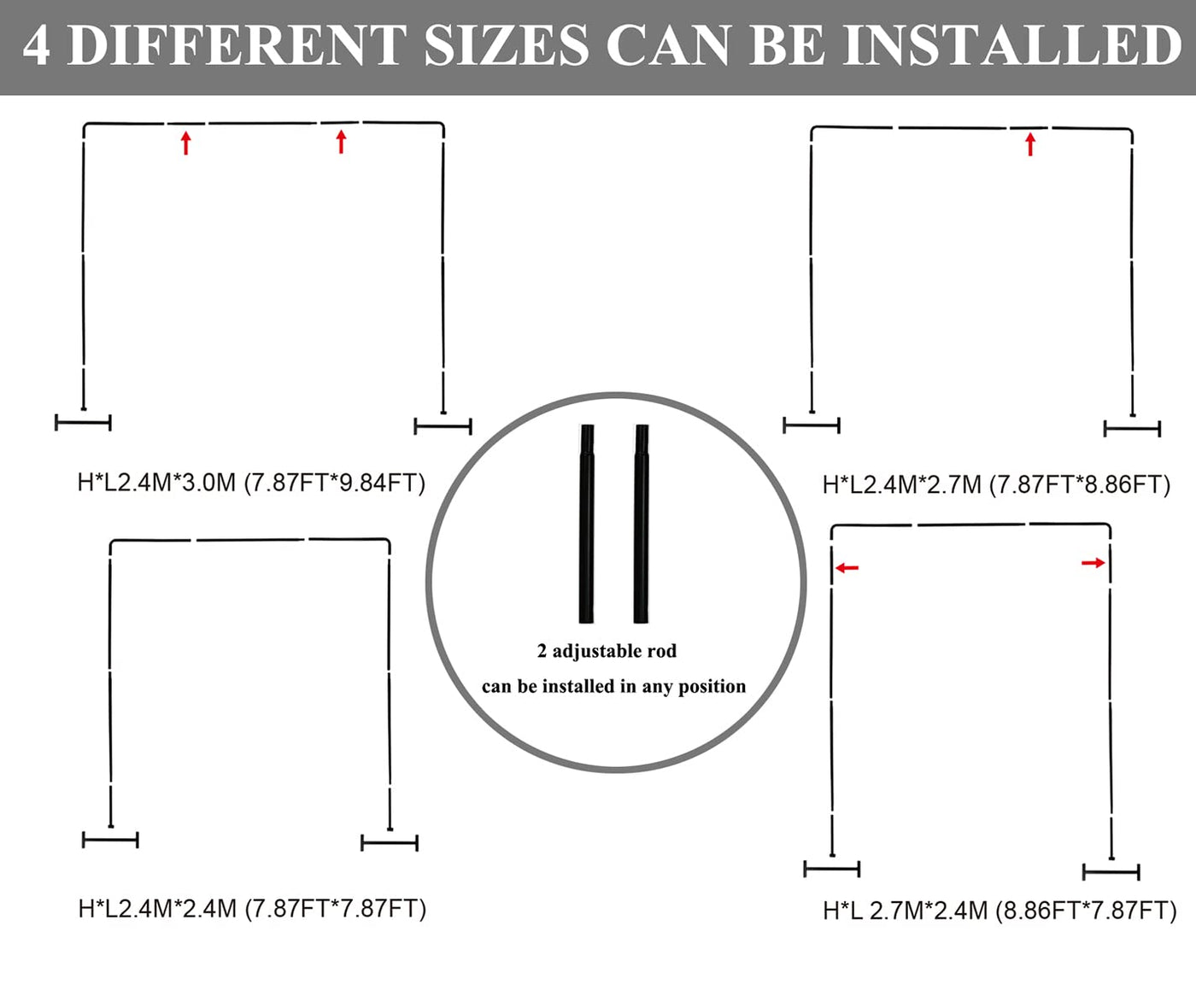 Q: What accessories are included with the backdrop stand?A: The backdrop stand comes with a variety of accessories including plastic balloon rings, balloon tape, glue dots, and an instruction manual. These accessories help you to better build and decorate the stand arch according to your event's theme.