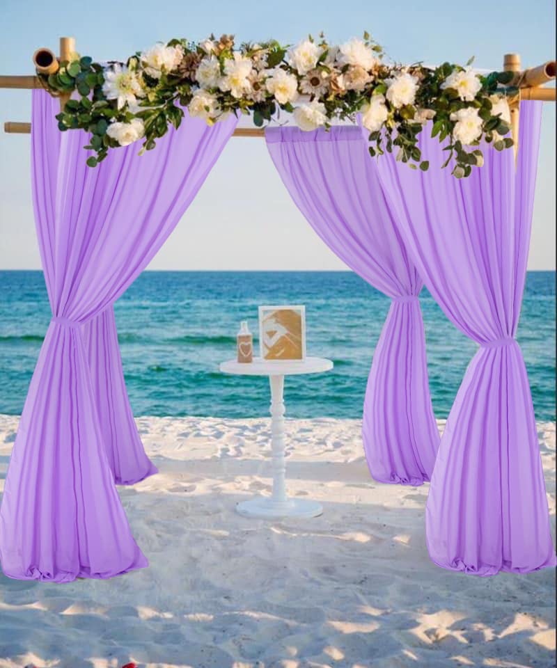 Q: What material are the draping fabrics made from?A: The Lavender Wedding Arch Drapes are made from 100% high-quality polyester chiffon, ensuring durability and an elegant appearance for your special occasions.