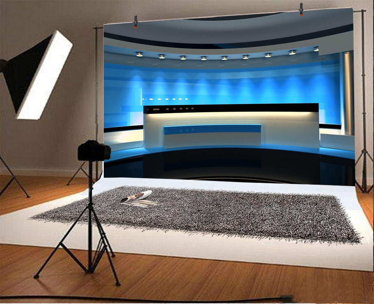 Leyiyi 7X5Ft News Broadcast Hall Backdrop Recetation Desk Modern Office Interior Program Record Front Table Tv Show Photo Backgr