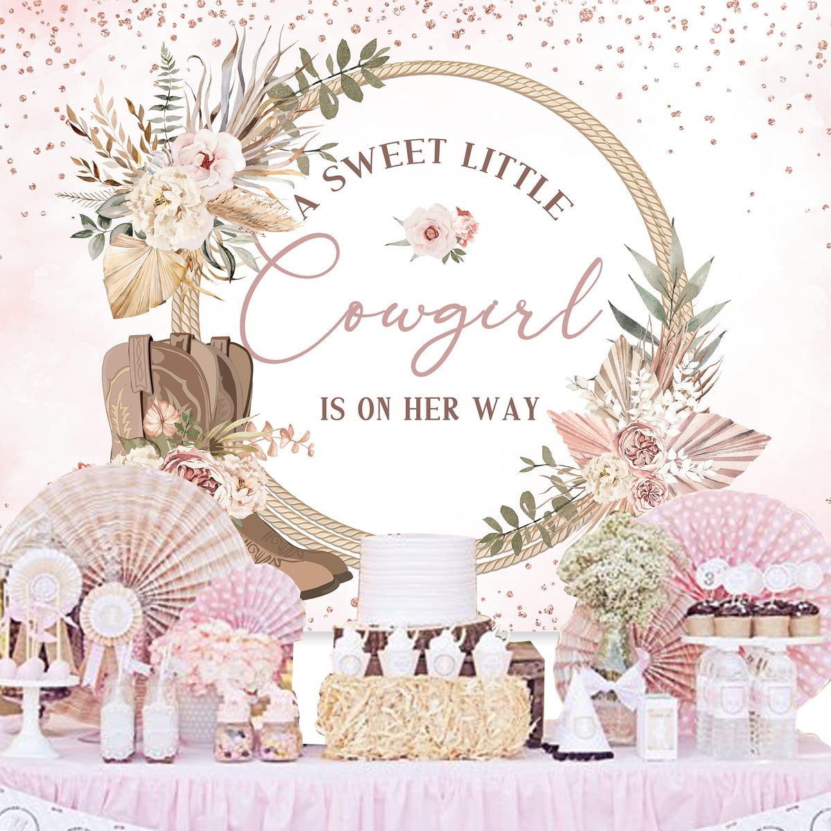 Lightinhome Cowgirl Backdrop 7Wx5H Feet Boho Western Country Floral Straw Rope Cowboy Wild West Girl Baby Shower Photography Bac