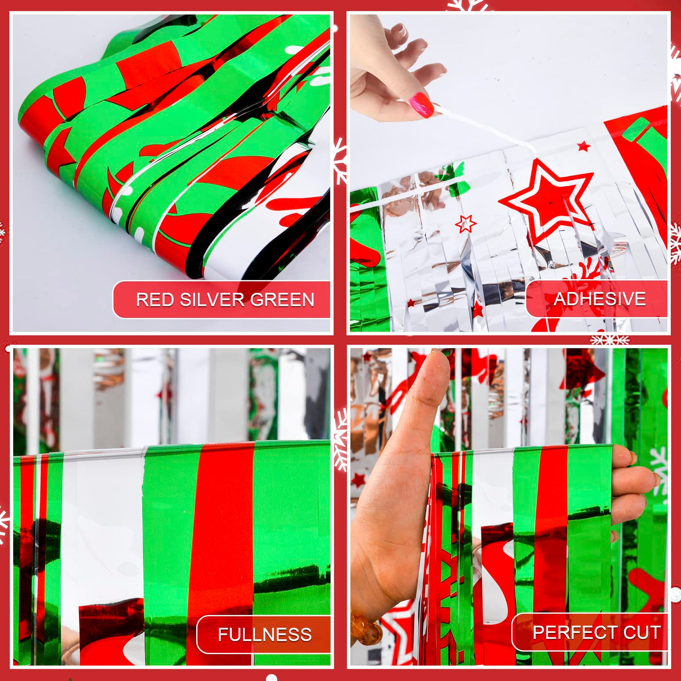 Lolstar Foil Fringe Curtains Christmas Themed Red, Silver, Green 3.3 X 6.6 Ft Photo Backdrop For Ugly Sweater Parties
