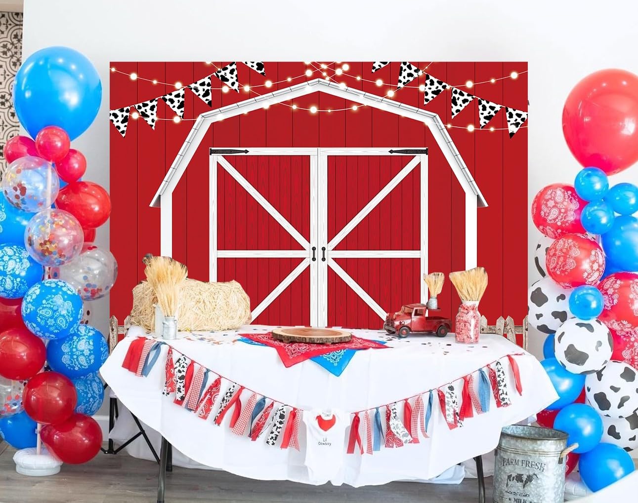 Ltdkaen Red Barn Door Backdrop Wooden Barn Door Farmhouse Photography Rustic Farm Backdrop Country Scene Farm Party Decoration P