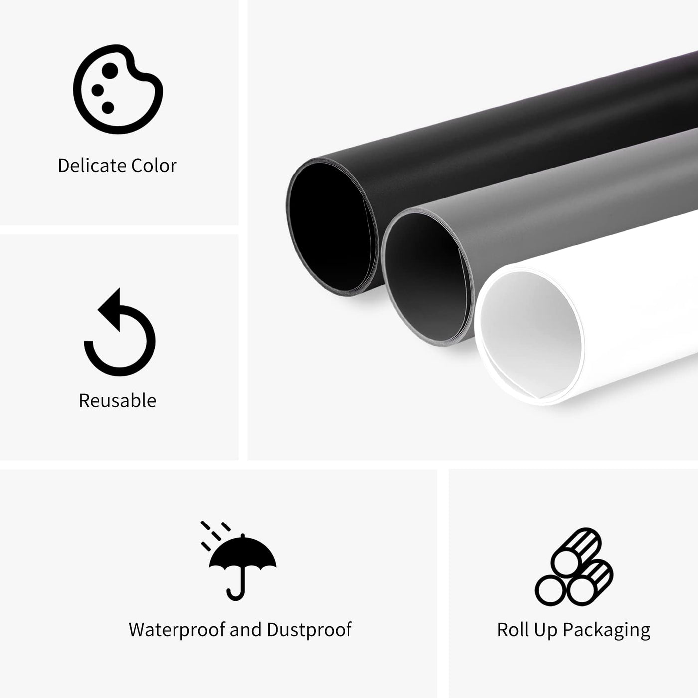 Features: This Backdrop Is Constructed Of Premium Fabricated Material. Simply Dust Off The Surface And It Will Be Ready To Use Over And Over Again Durable And Washable Featuring Water-Proof Surface. Ideal For Photo Background, Product Shots For Internet Display Or Sales, Display Banners, Drafting And Decorations. Fine Scrub Pvc Background Paperboard. Perfect For Shooting Jelwery, Leather Products, Tuffed Toys, Etc. Specifications: Material: Pvc Color: White, Black, Gray Sizes: 31X59 Inch (80X150Cm) Package Includes: 3 X Pvc Background Kit Note: Only Include The Pvc Background Kit. The Stand And The Photographic Equipment Are Not Included! Warm Hint: The Pvc Background Kit Will Be Rolled Up To Delivery. It Is Normal For Creases To Occur After Receiving, Please Hanging Can Be Restored.