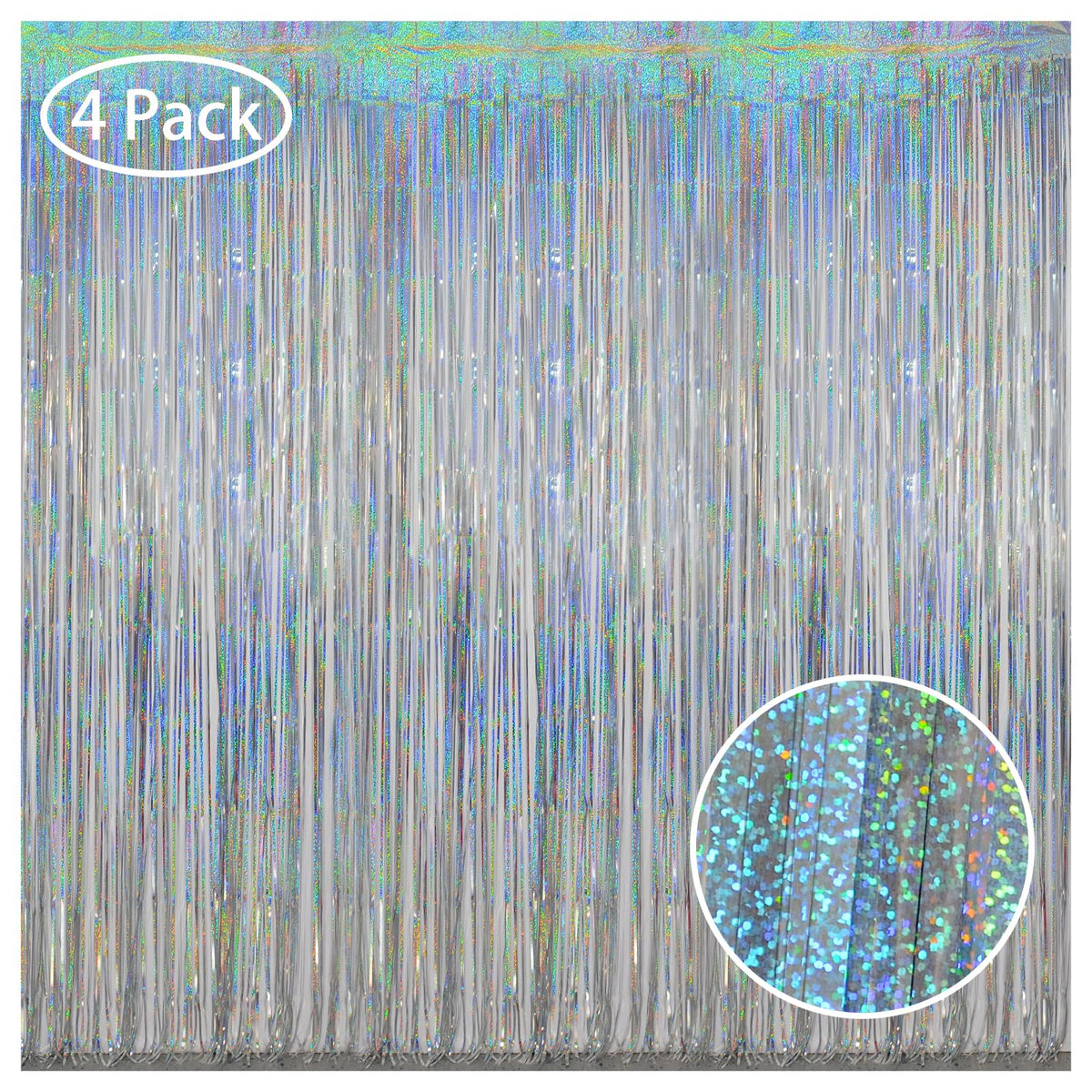 Q: How many curtains are included in one pack?A: Each pack contains 4 foil fringe curtains, allowing you to create a stunning backdrop for your events without needing to purchase multiple packs.