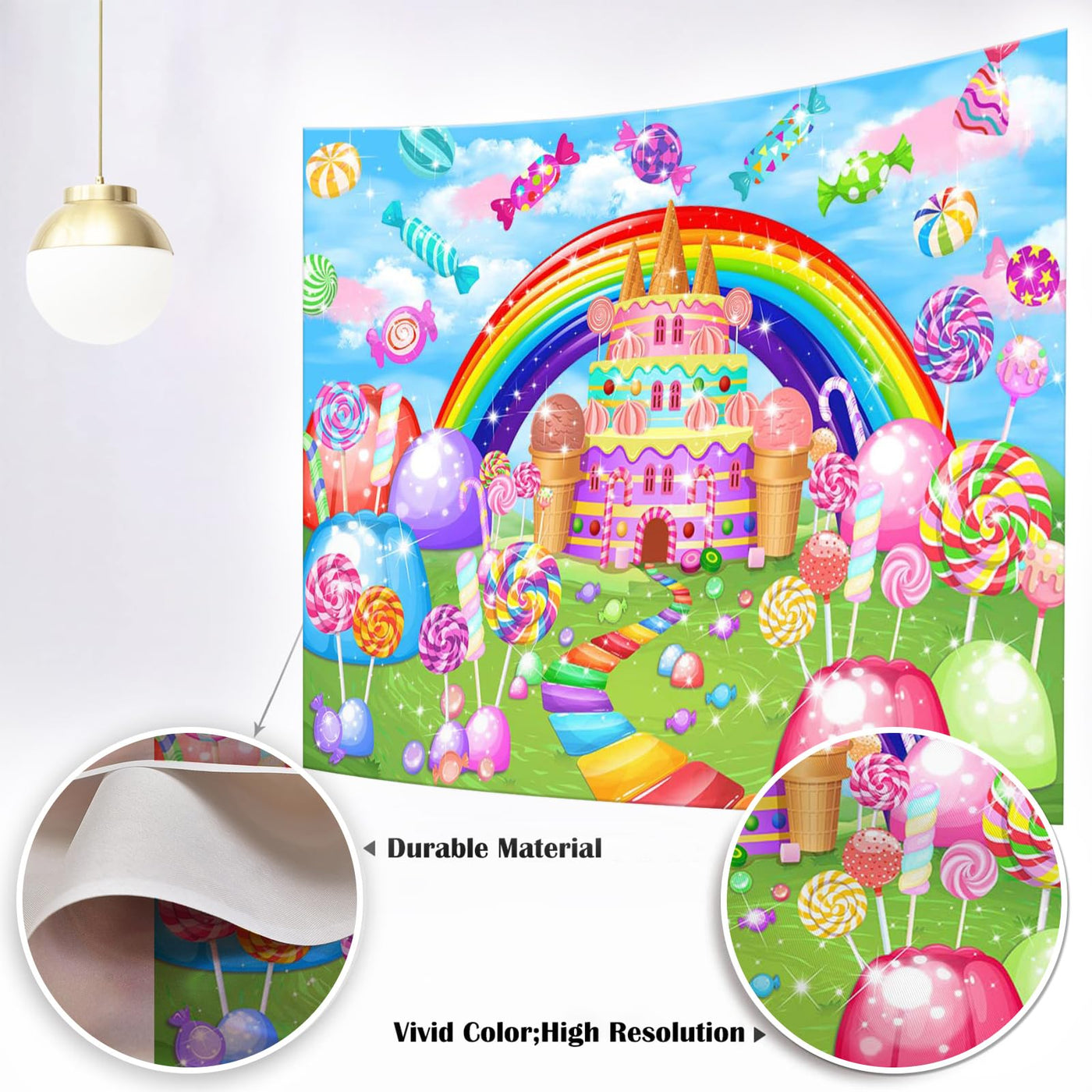Mocsicka Sweet Candyland Backdrop Lollipop Sweetest Candy Theme Birthday Party Decoration For Girl Candy Ice Cream Castle Rainbo