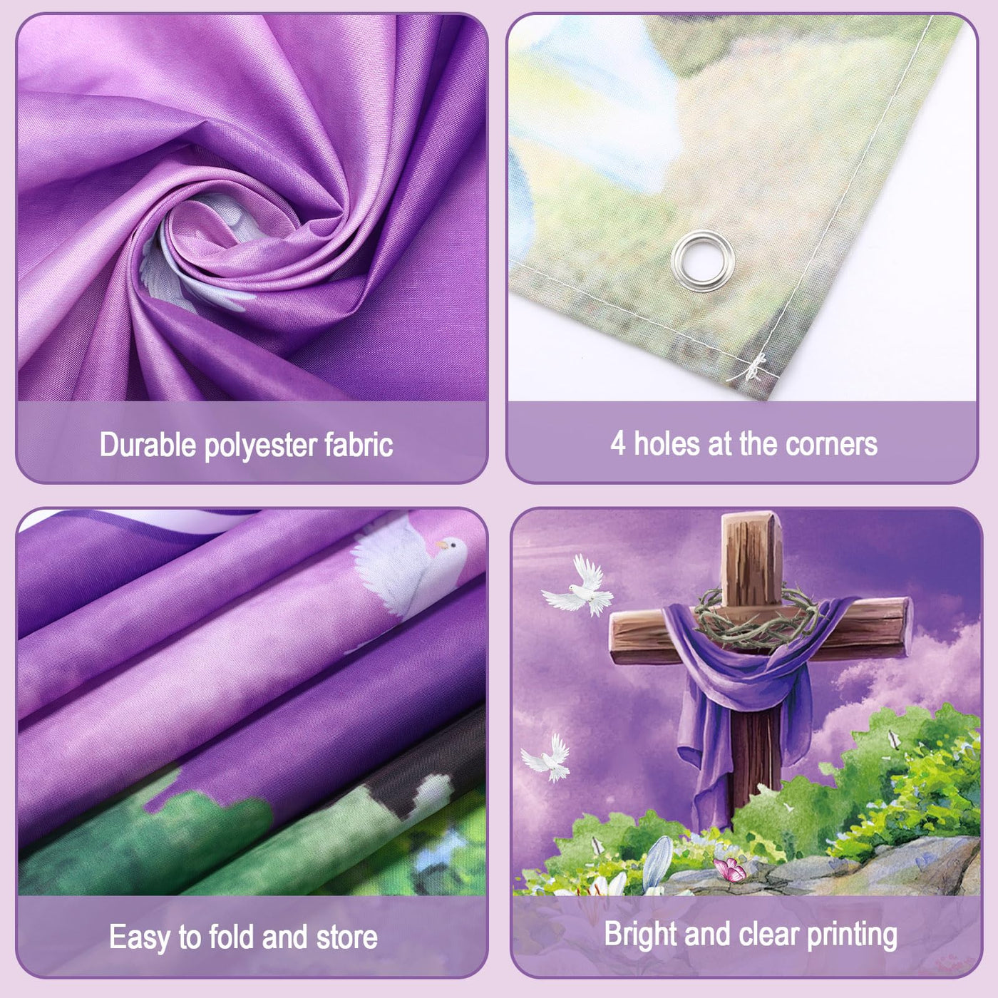 Feature: Easter Faith Background: Our Easter Religious Wall Decor Are Elegantly Designed And Look Great As Easter Decorations Or Photo Backdrops For Your Home, Church, Photo Booth. This Large Easter Lamb Decor Can Better Attract The Eye And Spread The Joy Of Easter. Since The Item Will Be Sent Folded, If There Are Creases, You Can Use It After Ironing And Washing. Basic Information: Quantity: 1 Material: Polyester Color: Purple, Green, White Background Cloth Size: 6.07 X 3.6 Ft / 1.85 X 1.1 M Rope Length: 19.69 Ft / 6 M Package Include: 1 X Easter Banner Backdrop 1 X Rope 1 Sheet Of Glue Point Notes: Manual Measurement, There May Be Slight Differences In Size. Due To The Screen Display, The Color Of The Item May Differ Slightly From The Picture. This Product Is Suitable For People Over 14 Years Old.