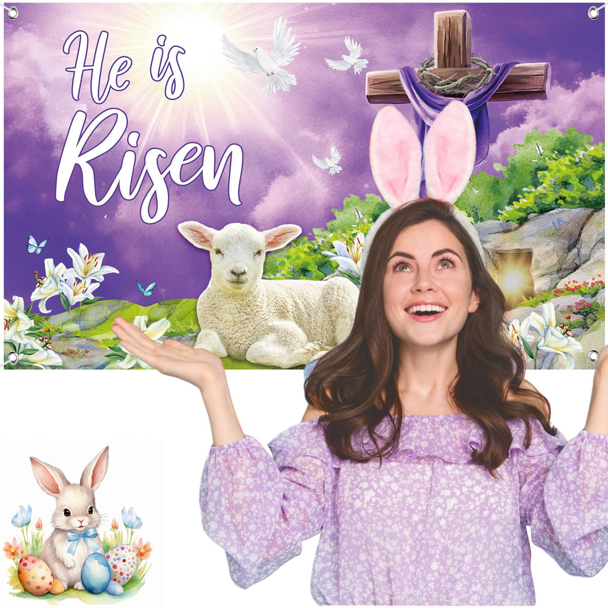 Moukeren Easter Banners For Church, He Is Risen Backdrop Decoration 6 X 3.6 Ft Jesus Cross Christian Photography Background For