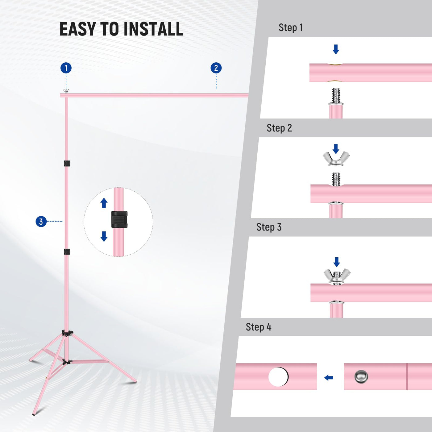 Neewer Nk-St0204 Photo Studio Backdrop Support System Provides A Secure And Reliable Solution To Your Photography Background Setups. Crafted From High Quality Aluminum Alloy, The Stand Is Robust And Capable Of Withstand A Max Load Of 8.8Lb/4Kg, Giving You Peace Of Mind When Supporting Your Photography Backdrop. With A Height And Width Adjustable From 2.3'-7'/70Cm-2.1M And 5'-10'/1.5-3M Respectively, It Offers The Flexibility To Accommodate Different Backgrounds. Specifications Model: Nk-St0204 Item Type: Studio Backdrop Support Kit Color: Pink Application: Wedding, Photography Main Features: Adjustable, Stable Main Material: Aluminum, Nylon Dimensions: 120''X84''X0.04''/305X213X0.1Cm Weight: 6.51Lb Load Capacity: 8.8Lb/4Kg Package Contents 2 X Backdrop Stand 4 X Crossbar 6 X Backdrop Spring Clamp 2 X Empty Sandbag 1 X Carrying Bag 1 X User Manual