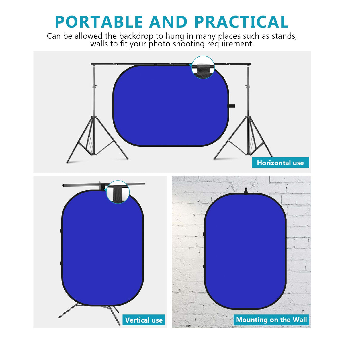 Note: When You First Get It, Be Careful When You Try To Open It, Because It Would Pop Out Quickly. Description: 2 In 1 Fabulous Design: It Has Double Sides And Two Colors (One Side-Blue, The Other Side-Gray) For Multiple Uses. Convenient: Easy To Set Up. You Can Hang This Background From A Tripod Stand Or A Hook Via The Circle Fitted On The Top. You Can Also Lean It Against A Wall Or Door On Its Frame To Provide A Background Pretty Much Anywhere. The Blue Backdrop Is Suitable For Portrait And Product Chromakey, Animation, News Interviews, Television And Other Video Chromakey. The Gray Backdrop Makes Cold Tone And A More Bright Effect Which Can Provide A Sharp Contrast Light. Come With A Black Zipper Carry Bag, The Background Panel Can Be Folded Down And Fits Into, Easy For Storage And Travel Use. Specifications: Material: Steel Frame & Polyester Color: Blue/Gray Opening Dimensions: 5X7 Feet/150X200 Centimeters Folded Dimensions: 63X63X3 Centimeters/ 24.8X24.8X1.2 Inches Package Weight: 1.08 Lbs/490 Grams Package Contents: 1X 5'X7' Chromakey Blue/Gray Background 1X Zipper Carry Bag