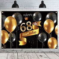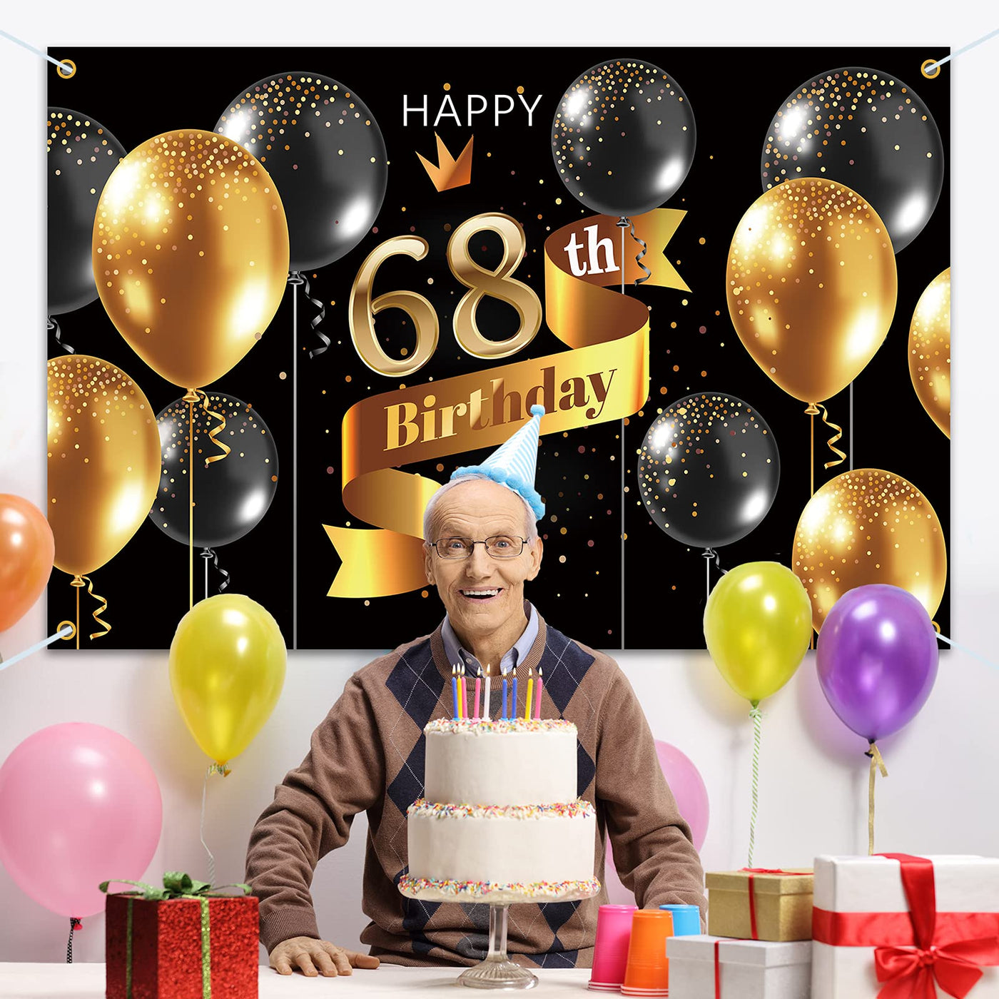 Pakboom Happy 68Th Birthday Backdrop Banner 68 Birthday Party Decorations Supplies For Men Black Gold 3.9 X 5.9Ft