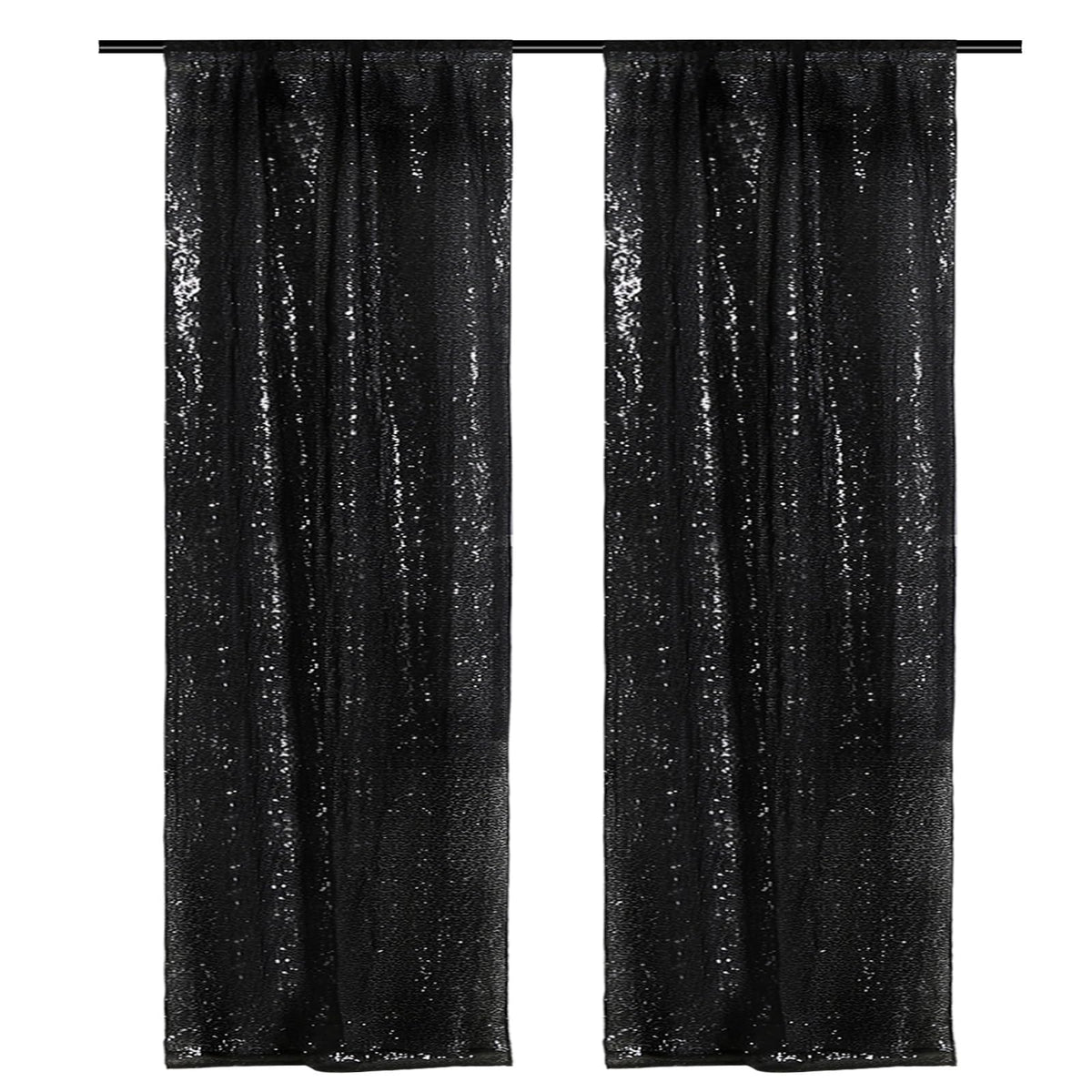 Partydelight Black 2Ft X 8Ft Sparkly Sequin Backdrop Curtains, 2 Panels, For Wedding, Party, Room Decorations.