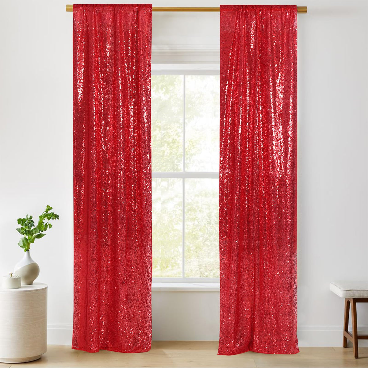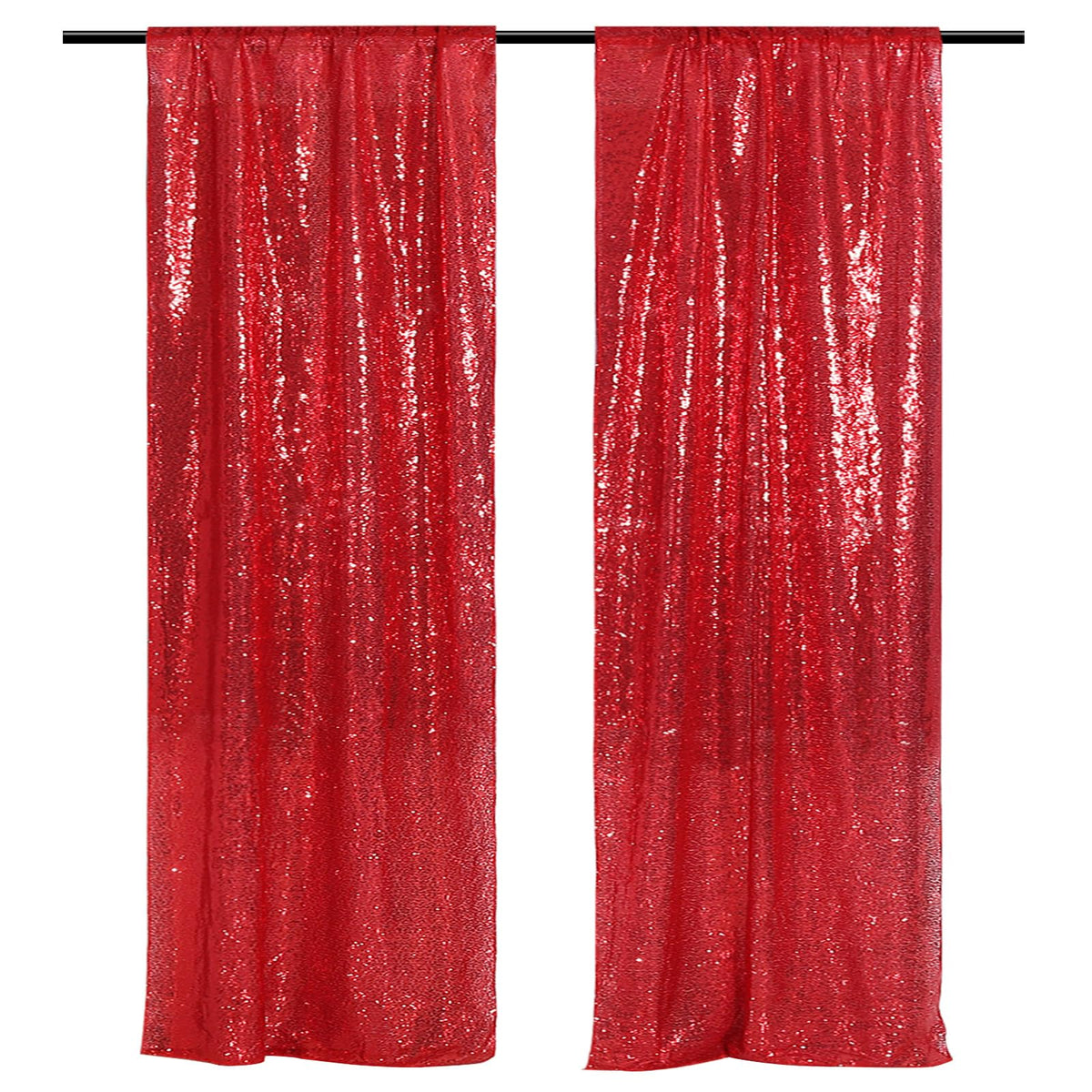 Partydelight Red 2Ft X 8Ft Sparkly Sequin Backdrop Curtains, 2 Panels, For Wedding, Party, Room Decorations