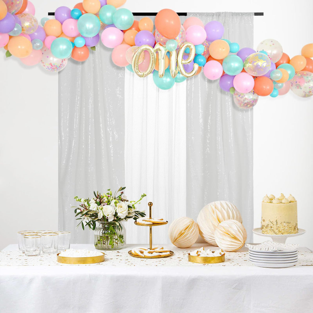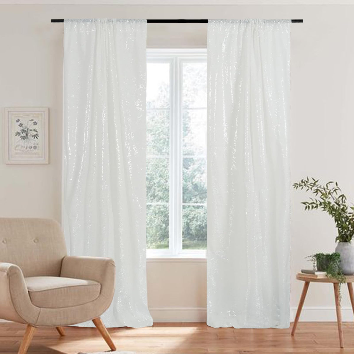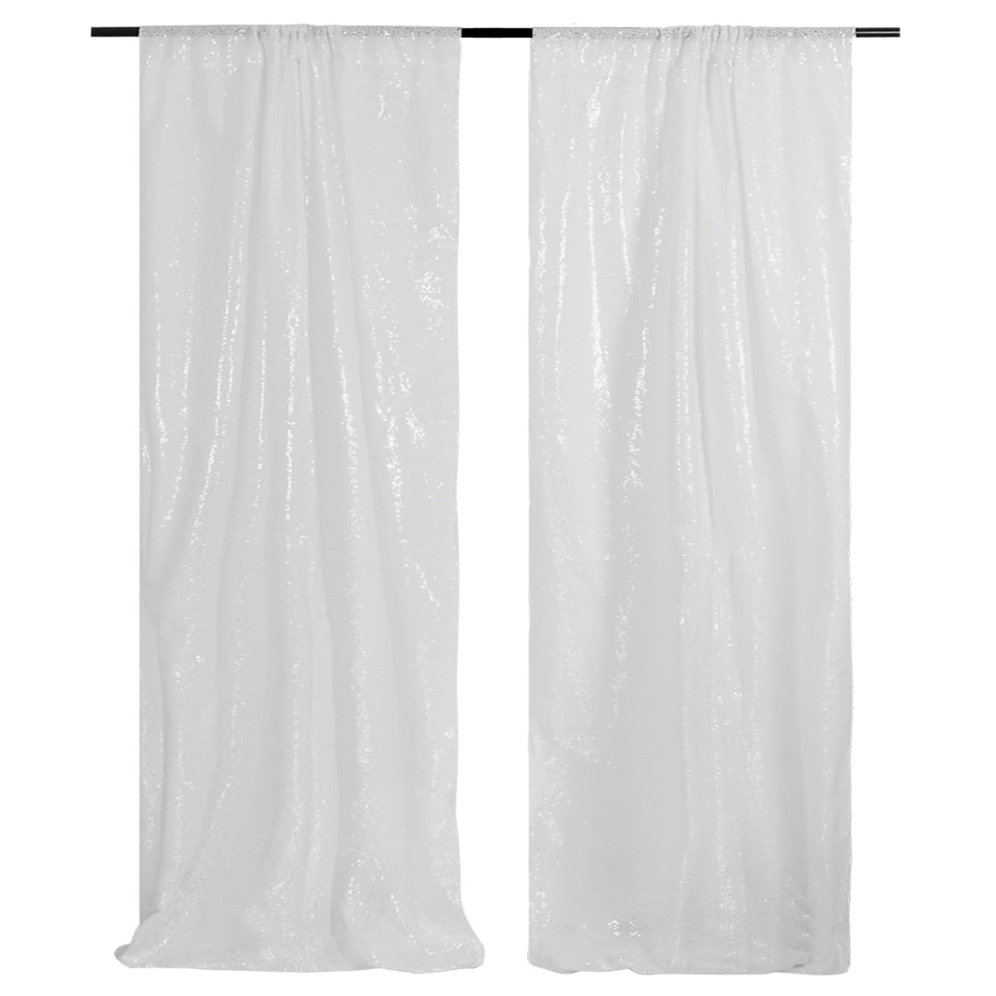 Partydelight White 2Ft X 8Ft Sparkly Sequin Backdrop Curtains, 2 Panels, For Wedding, Party, Room Decorations