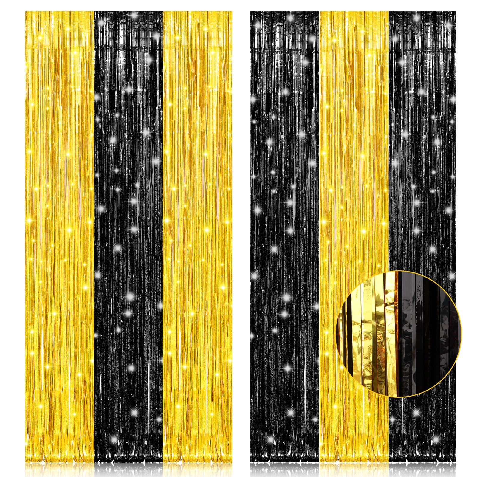 Pigetale, 2 Pack 3.2X8.2 Feet Black And Gold Tinsel Backdrop Party Decorations, Foil Fringe Curtains Backdrop For Birthday Gradu