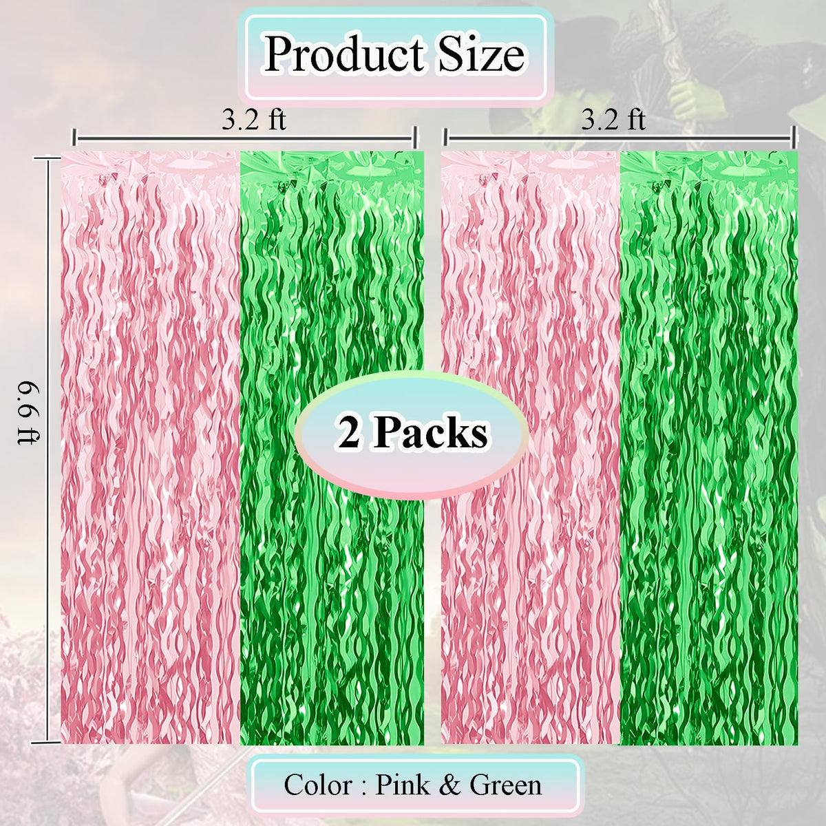 Pink And Green Wavy Tinsel Foil Fringe Curtains Photo Booth Backdrop For Green Pink Theme Birthday Party Witch Decorations(2 Pack,3.2 Ft X 6.6 Ft)