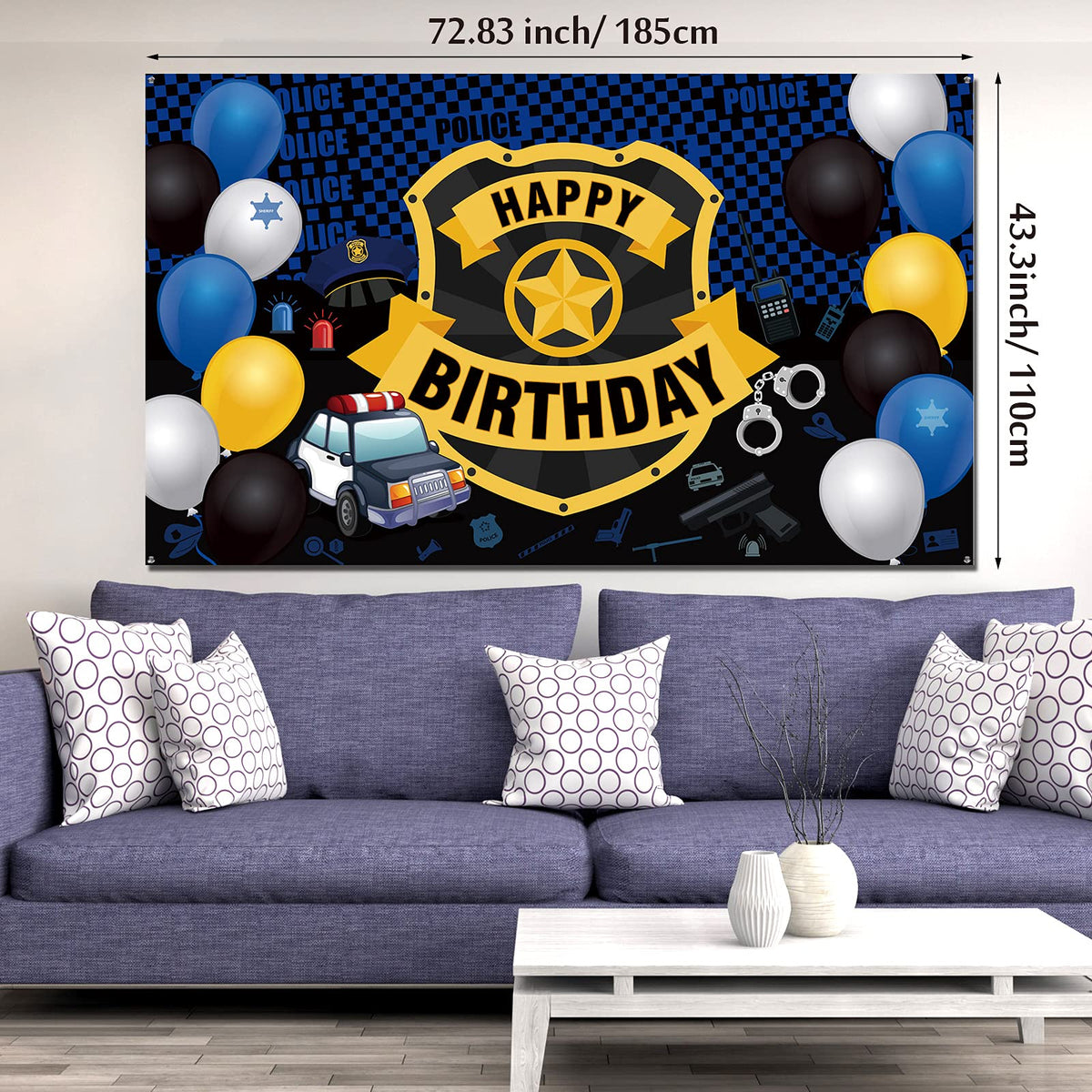Police Theme Happy Birthday Party Decorations Police Large Badge Banner Backdrop Wall Large Police Booth Car Background For Poli