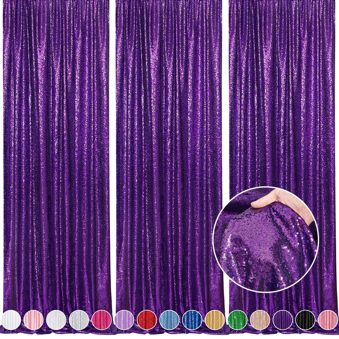 Q: What materials are used in the sequin backdrop?A: The backdrop is made from high-density 3MM round sequins with a durable mesh fabric backing, ensuring that sequins are securely attached and do not easily fall off.