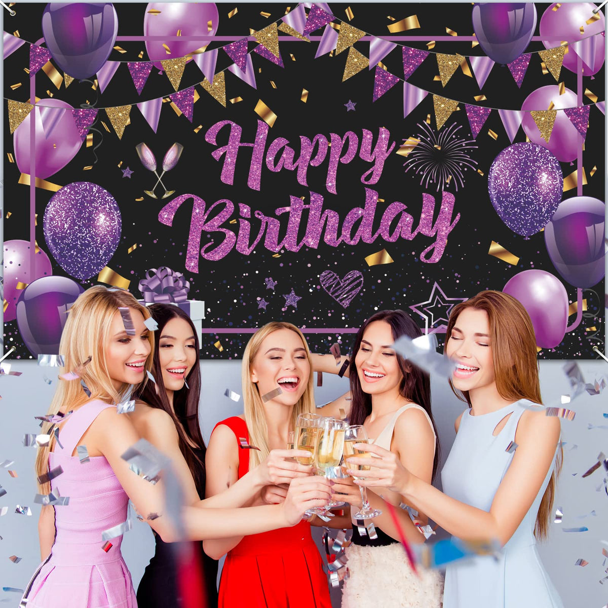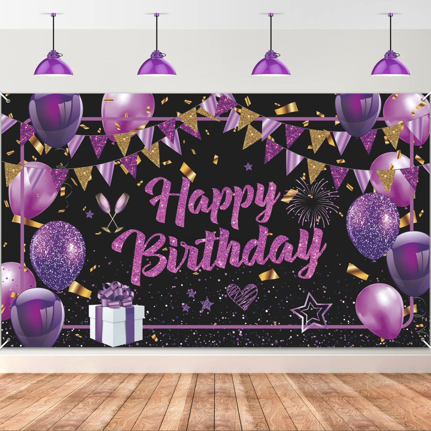 Purple Happy Birthday Banner Purple Black Gold Birthday Party Decorations Large Purple Birthday Sign Shiny Purple Black Birthday
