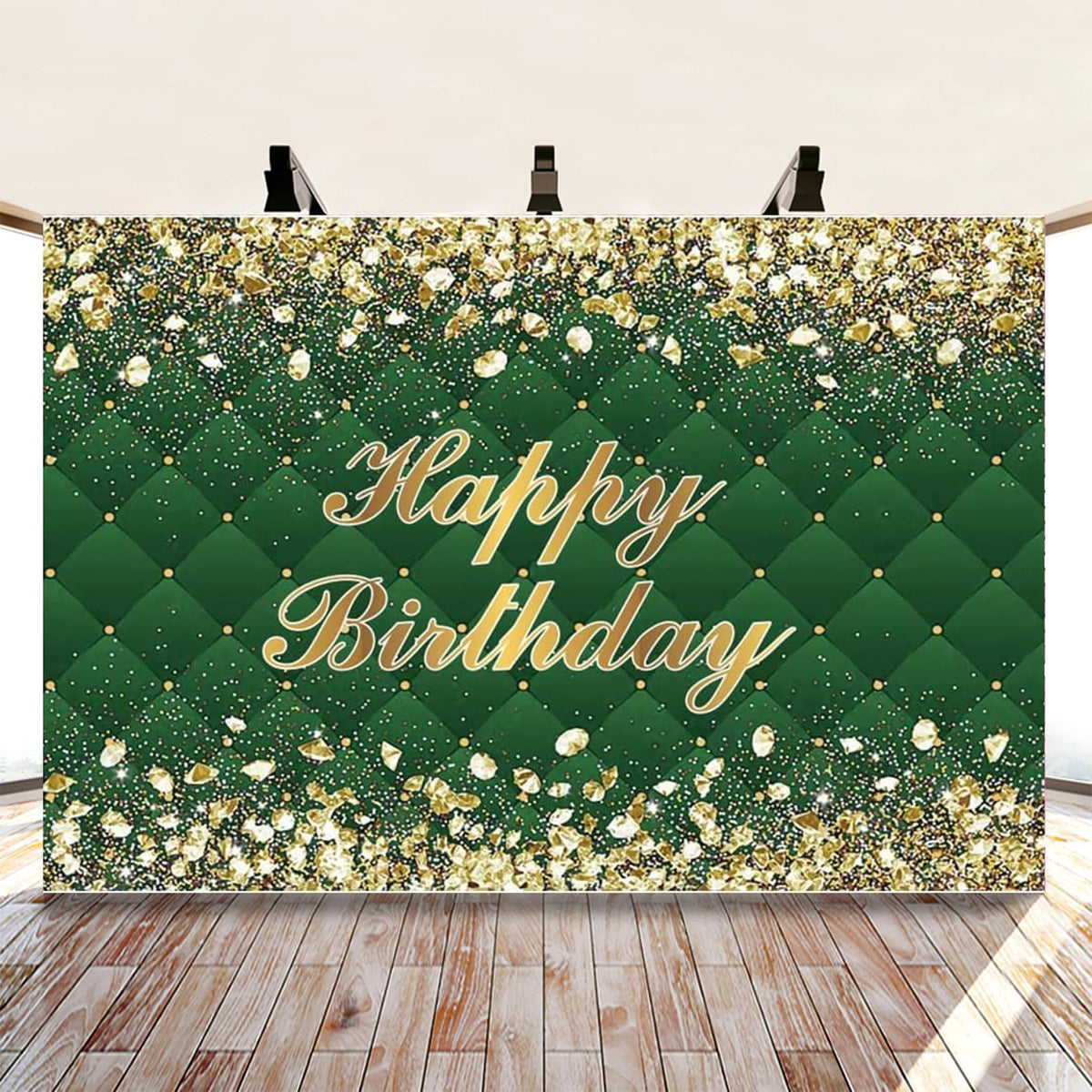 Renaiss 7X5Ft Happy Birthday Backdrop Banner For Photoshoot Portrait Gold Diamonds Green Photography Background For Men Women 30