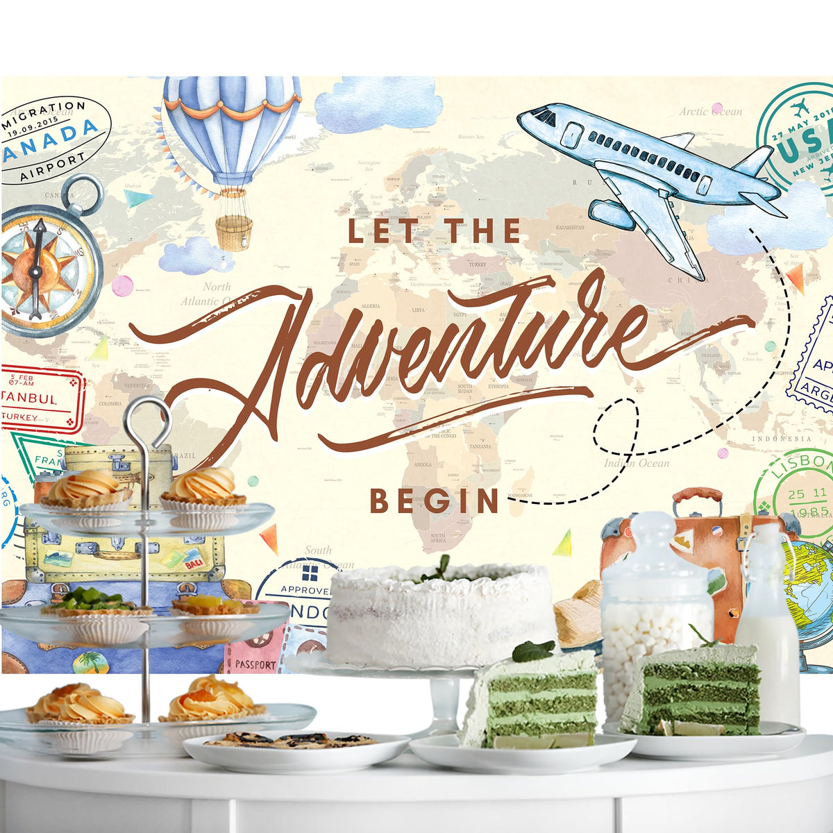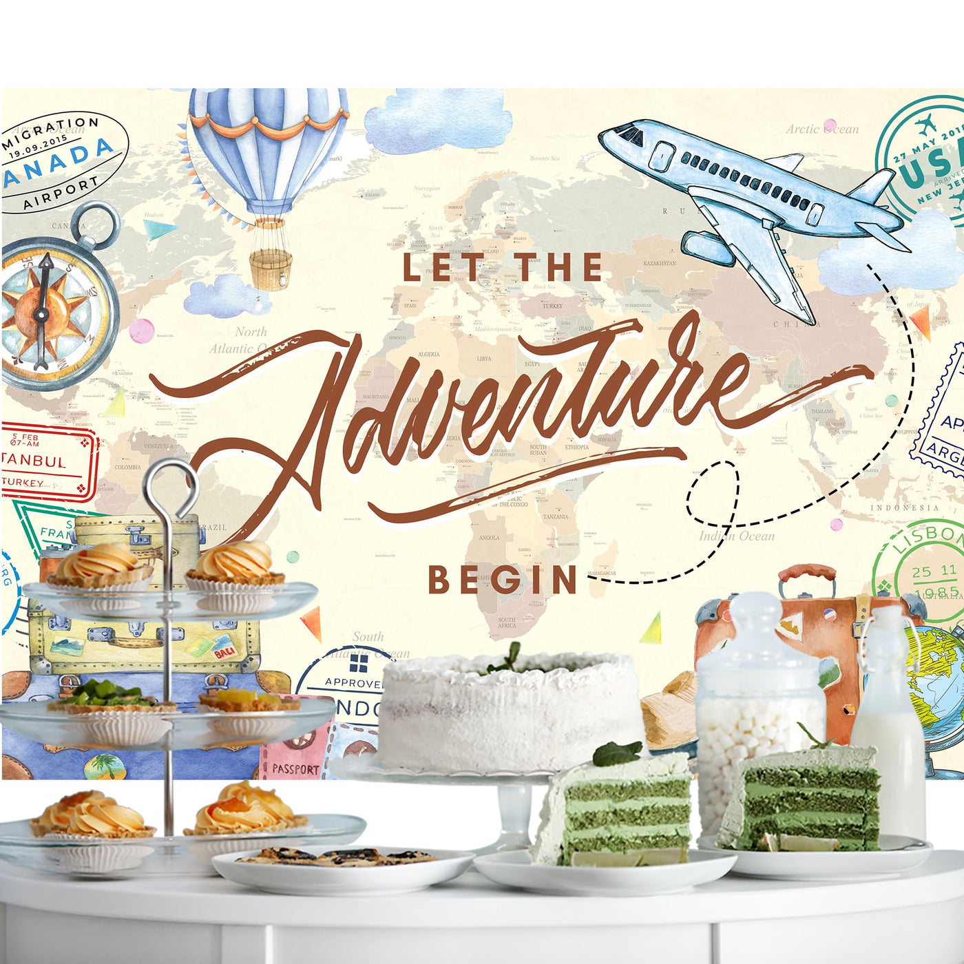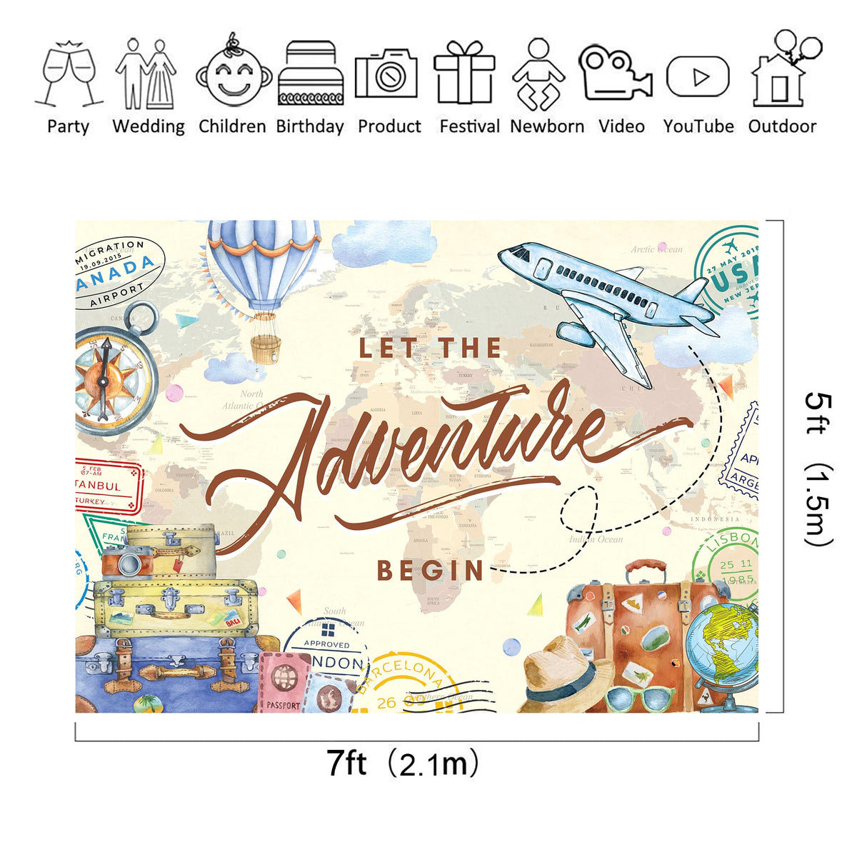 Riyidecor Let The Adventure Begin Backdrop World Map Adventure Awaits Airplane Baby Shower Decorations 7Wx5H Feet Travel Hot Air