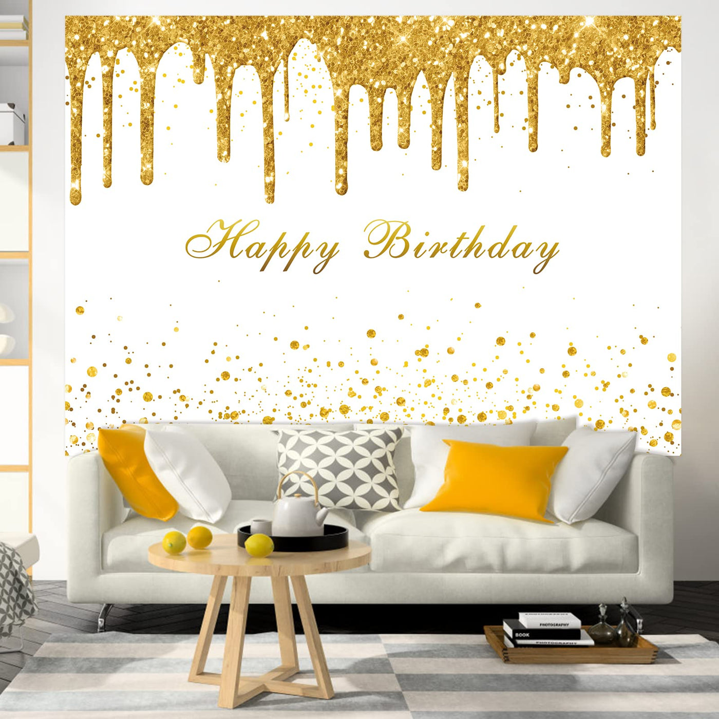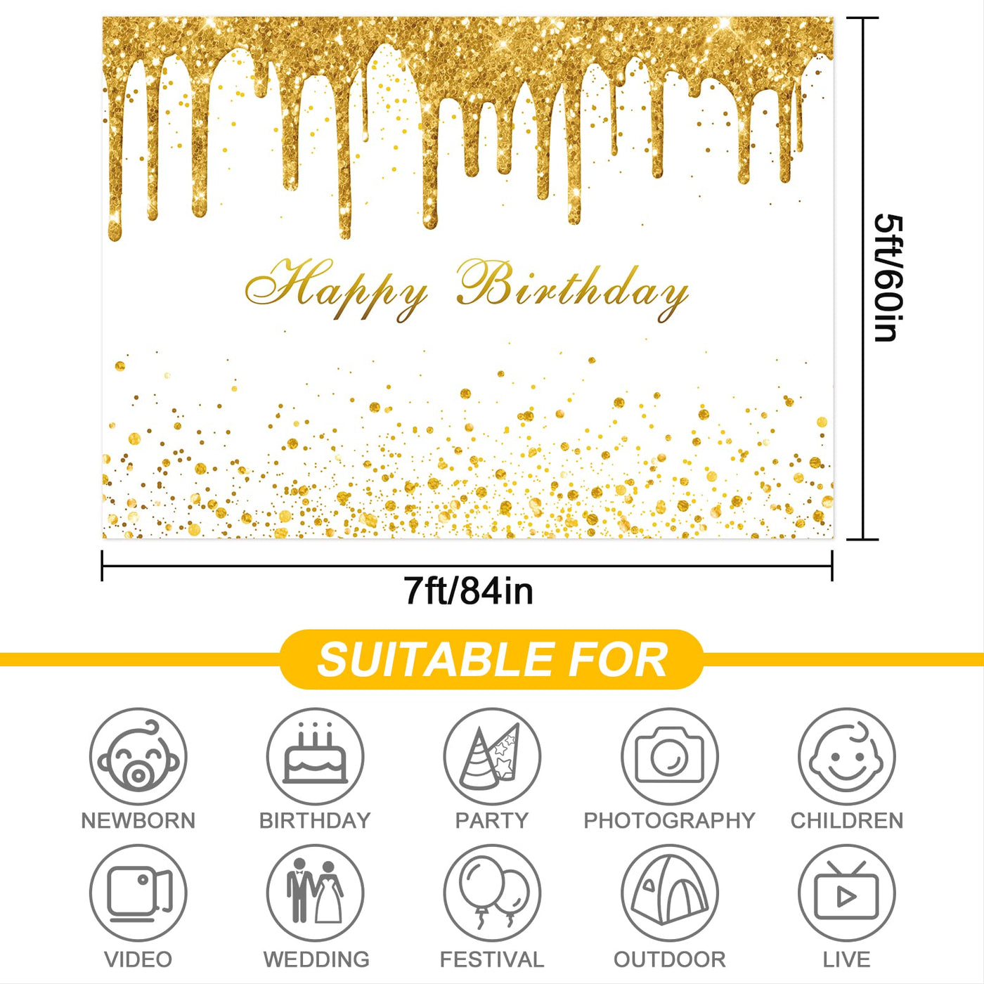 Q: Can this backdrop be used for outdoor events?A: Yes, the Rsuuinu Golden Birthday Party Backdrop can be used for outdoor events, but it is recommended to ensure it is secured properly to prevent it from being blown away by the wind. It is also suitable for indoor settings like photo studios, parties, and cake table decorations.