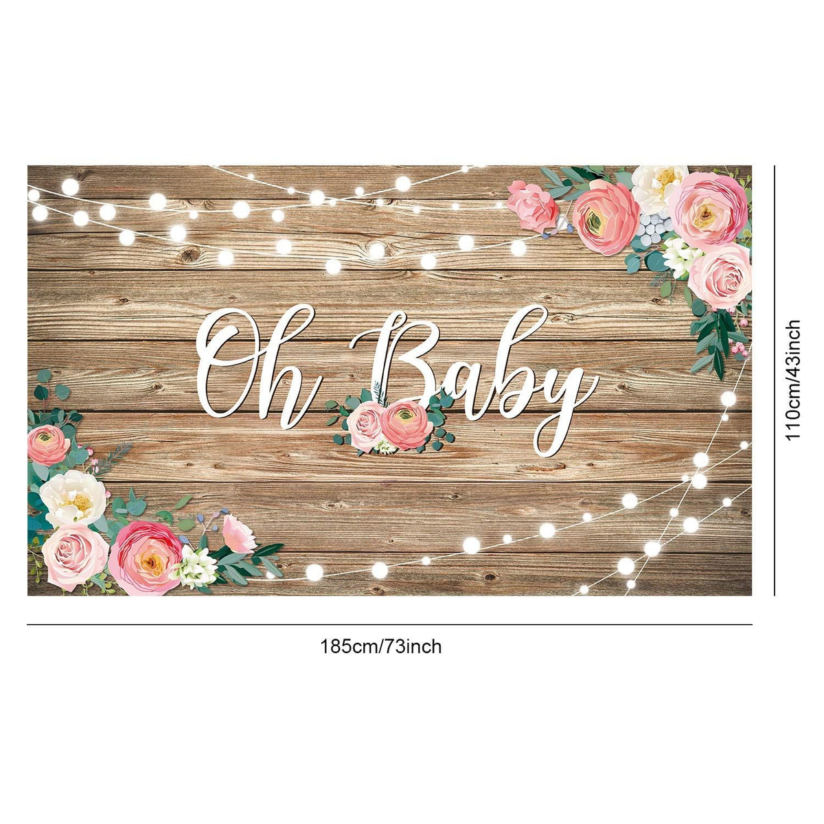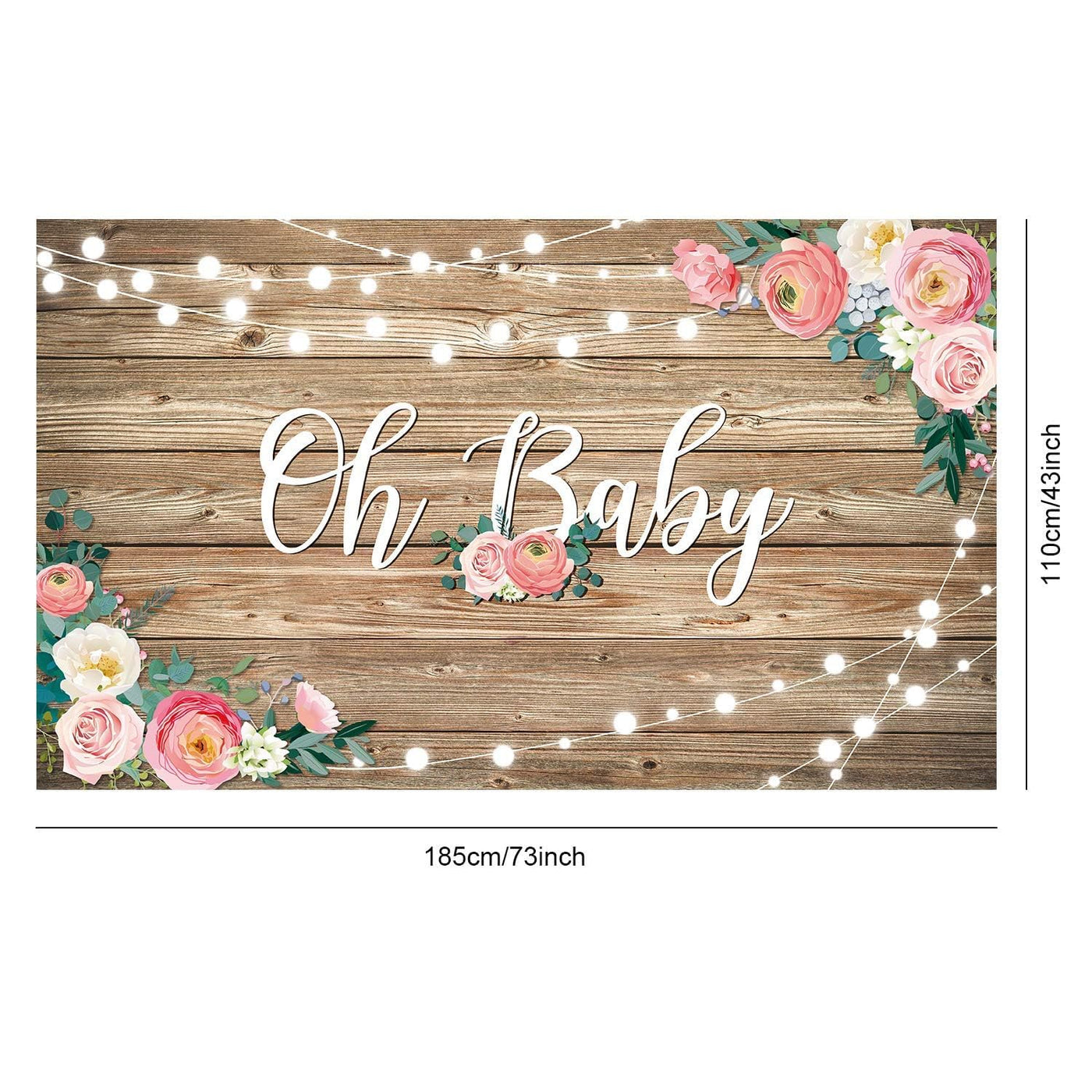 Rustic Wood Baby Shower Backdrop Banner Large Size Oh Baby Floral Baby Shower Photo Backdrops Wood Floor Flower Wall Background Newborn Birthday Party Banner Photo Shoot Booth Baby Shower Element: Baby Shower Element: Oh Baby Party Supplier Set Can Be Applied As Family Photo Props; You Can Take Beautiful And Memorable Photos Or Selfies With This Decoration, Which Is A Real Saver For Party Decorations With Its Multifunction; It Saves Time And Energy In Decorating, Can Make Your Big Party Glam And Fab Material: Thick Polyester Fabrics With Vibrant Printing Size: Length (6 Feet/ 1.8M) And Width 3.6 Feet/1.1 M) White String: 13Ft Package Content: 1 X Baby Shower Backdrop Banner 1 X White String