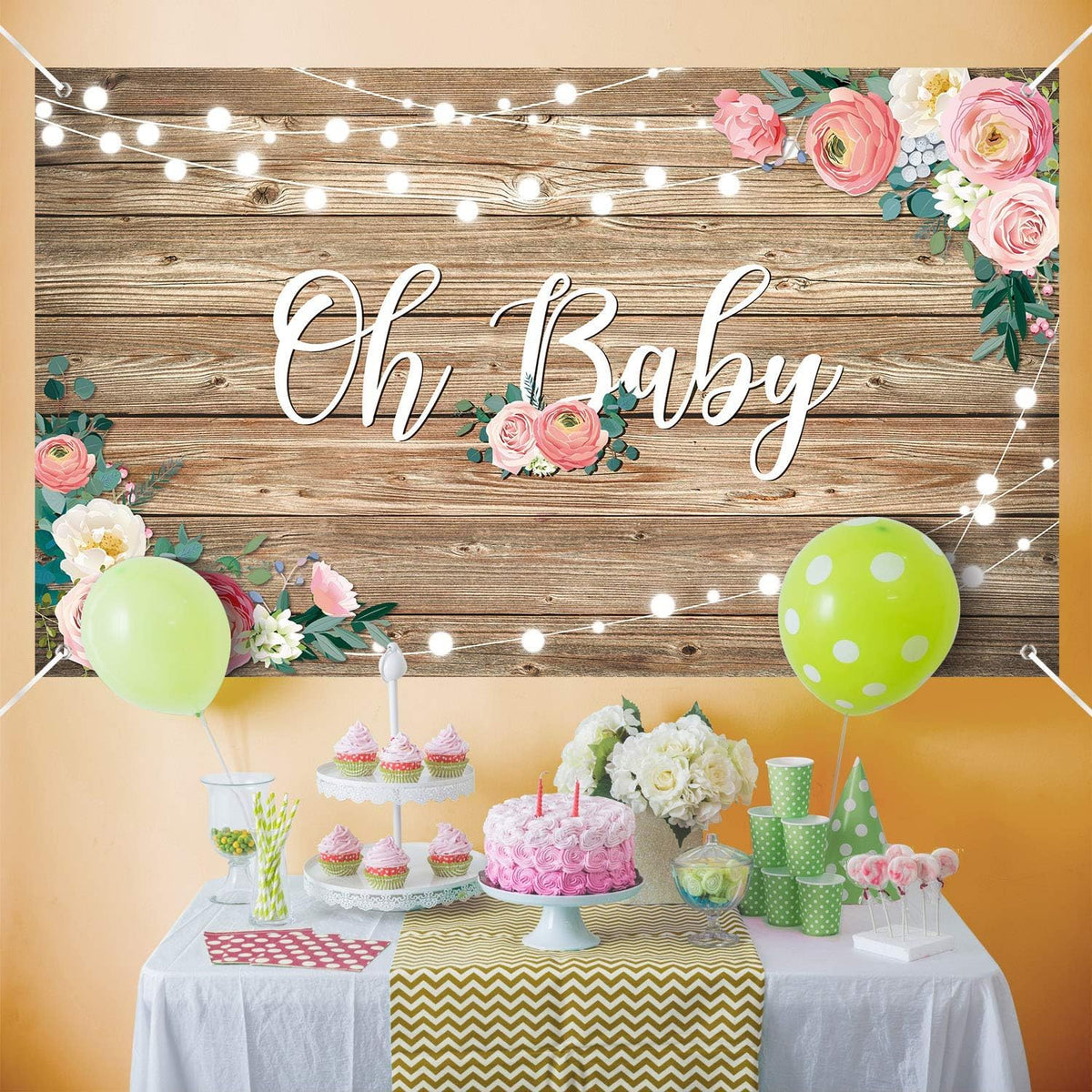 Rustic Wood Baby Shower Backdrop Banner Oh Baby Floral Baby Shower Decorations Background For Girls And Boys Wood Floor Flower W