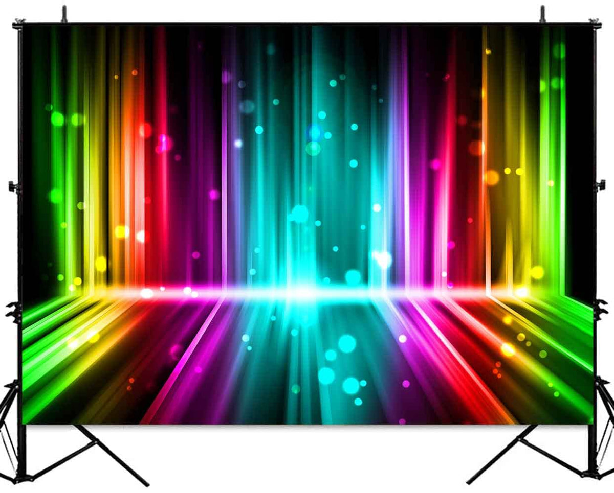 Sensfun Let'S Glow Party Backdrop Music Disco Dance Rainbow Neon Photography Background Birthday Newborn Photo Studio Vinyl Bann