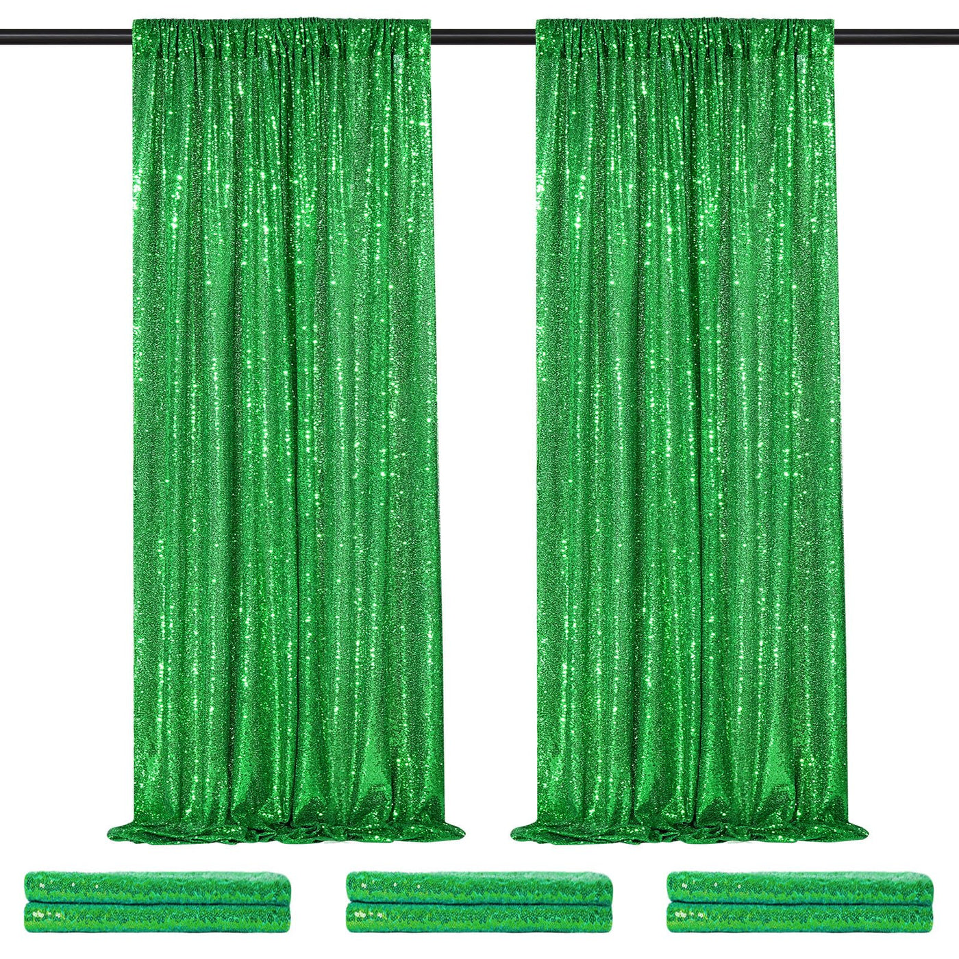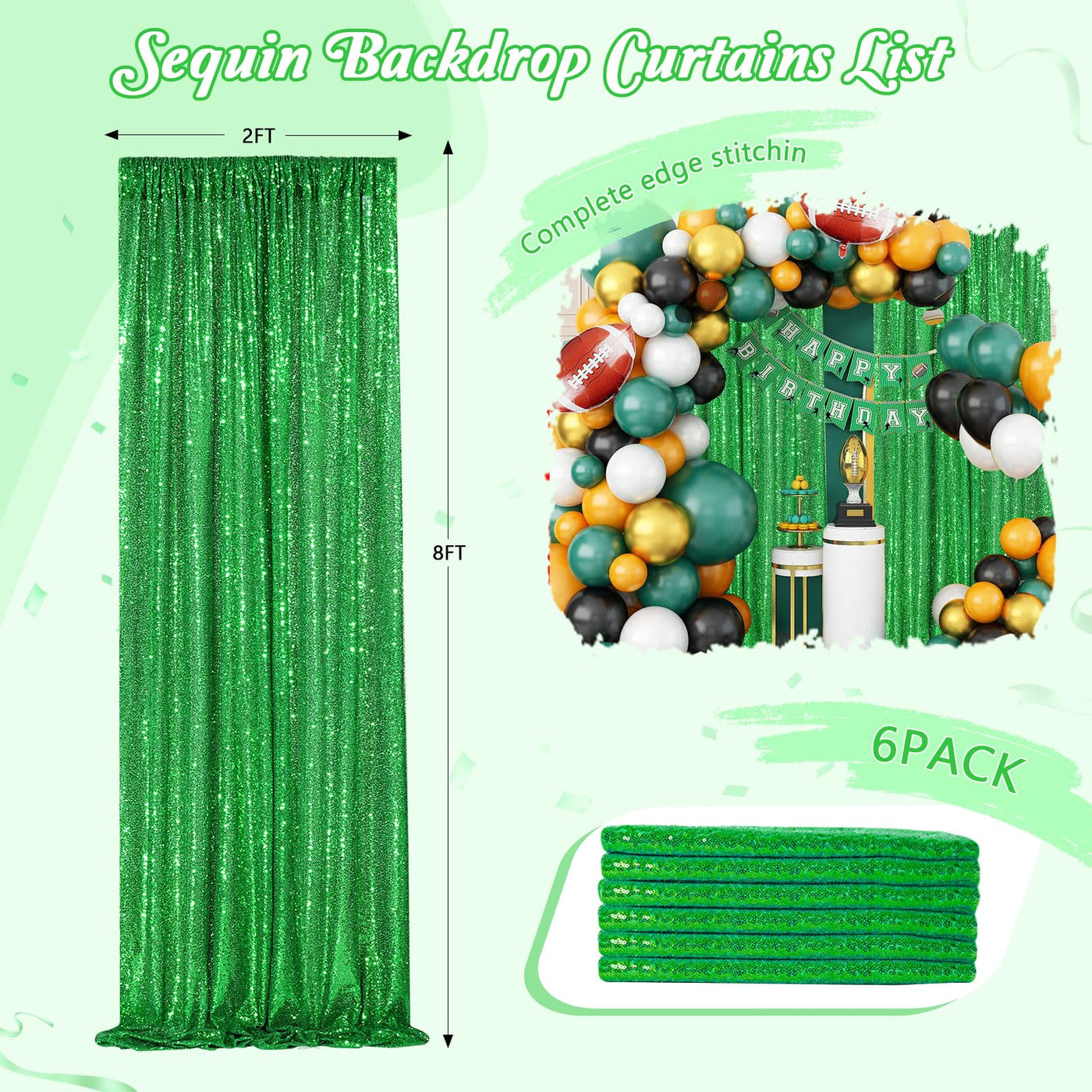 Sequin Backdrop Curtains 6 Packs 2Ftx8Ft Green Photo Background Drapes For Christmas Decoration Party Baby Shower