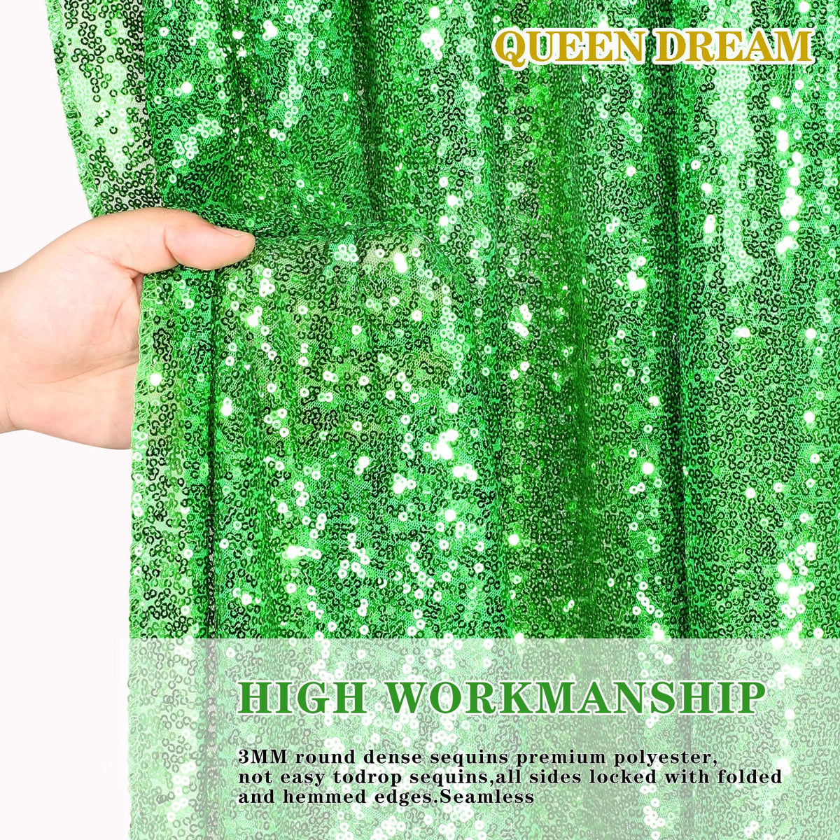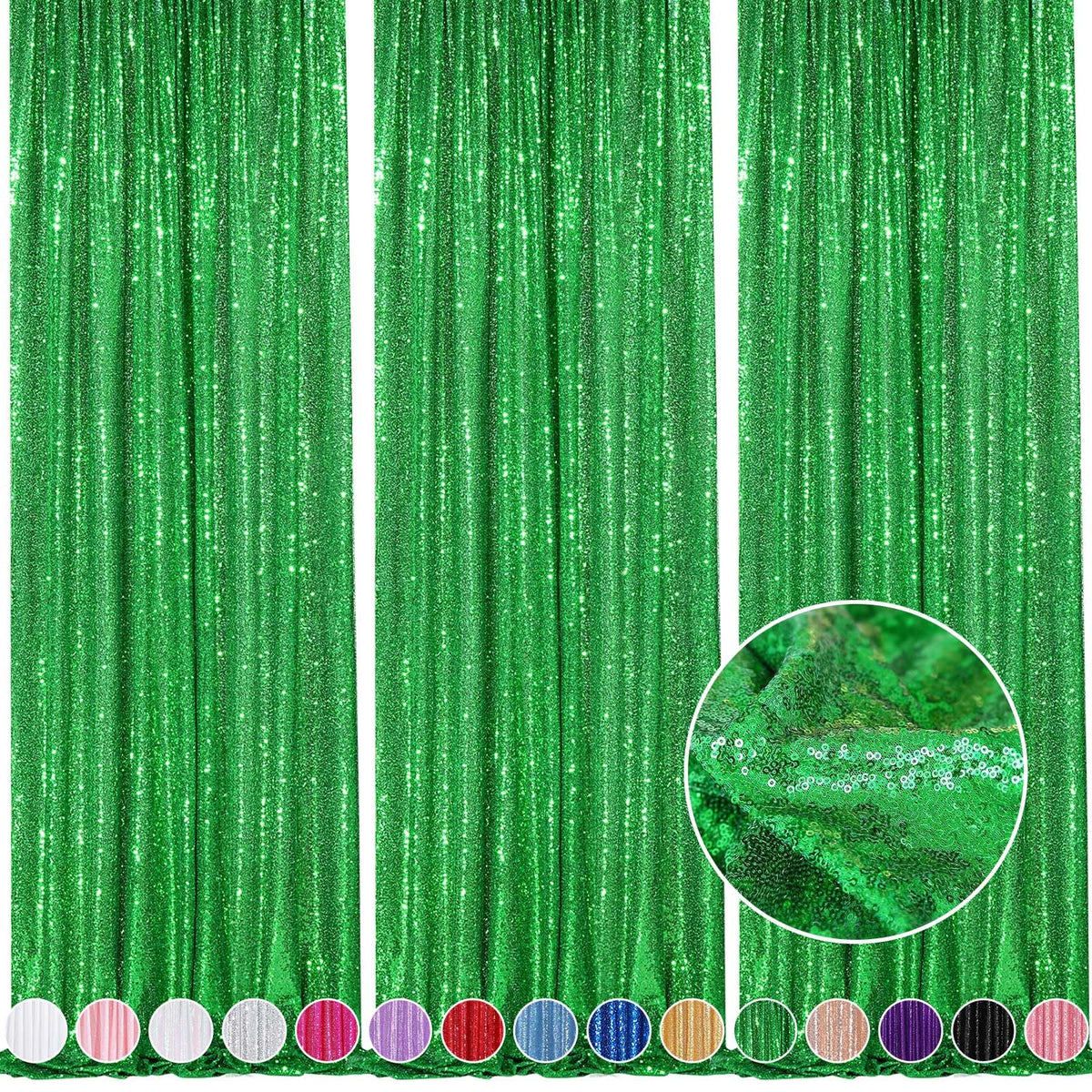 Q: What are the dimensions of the Sequin Curtains Christmas Backdrop?A: The Sequin Curtains Christmas Backdrop covers a total area of 6FT long x 8FT wide, and each package contains 3 panels, each measuring 2FT x 8FT.