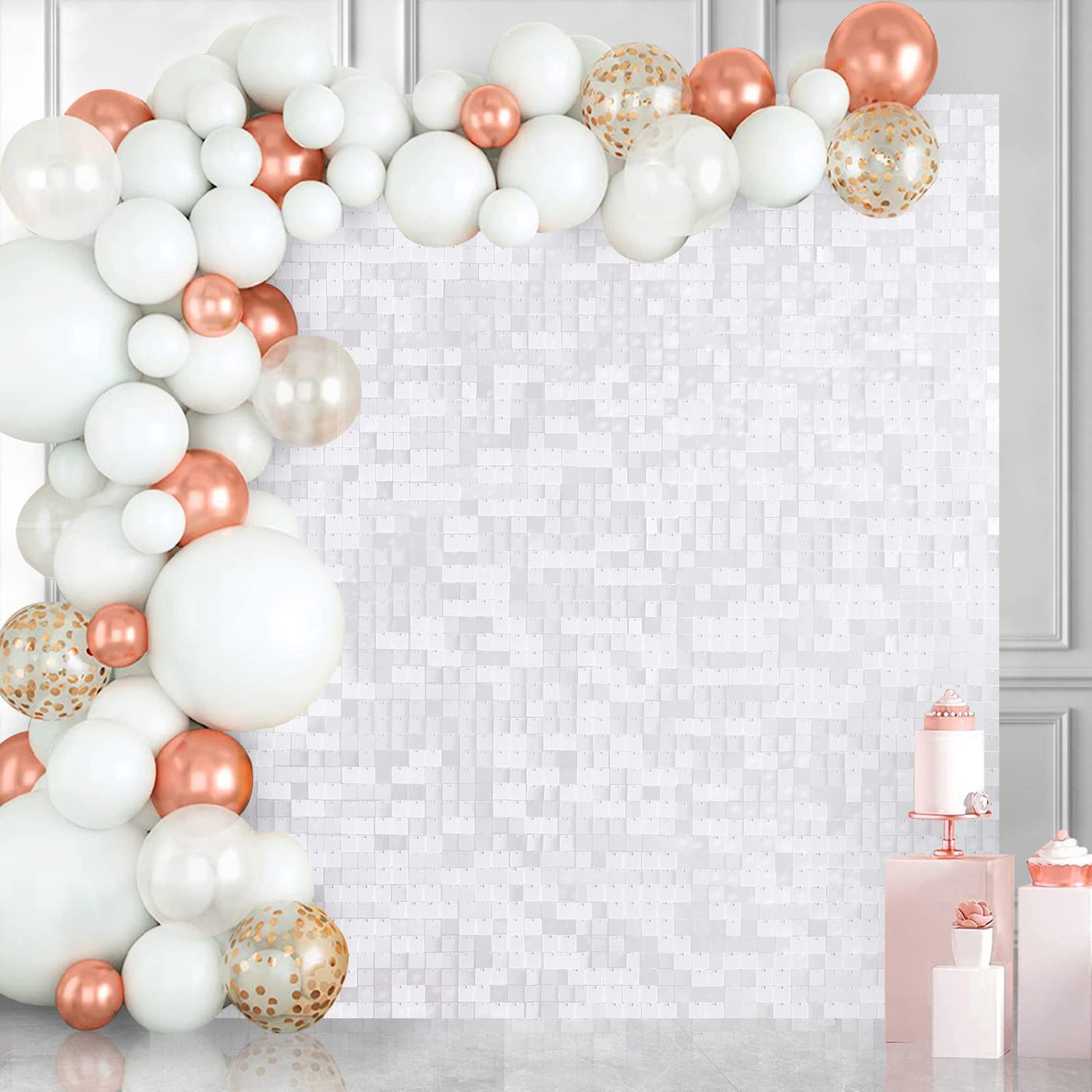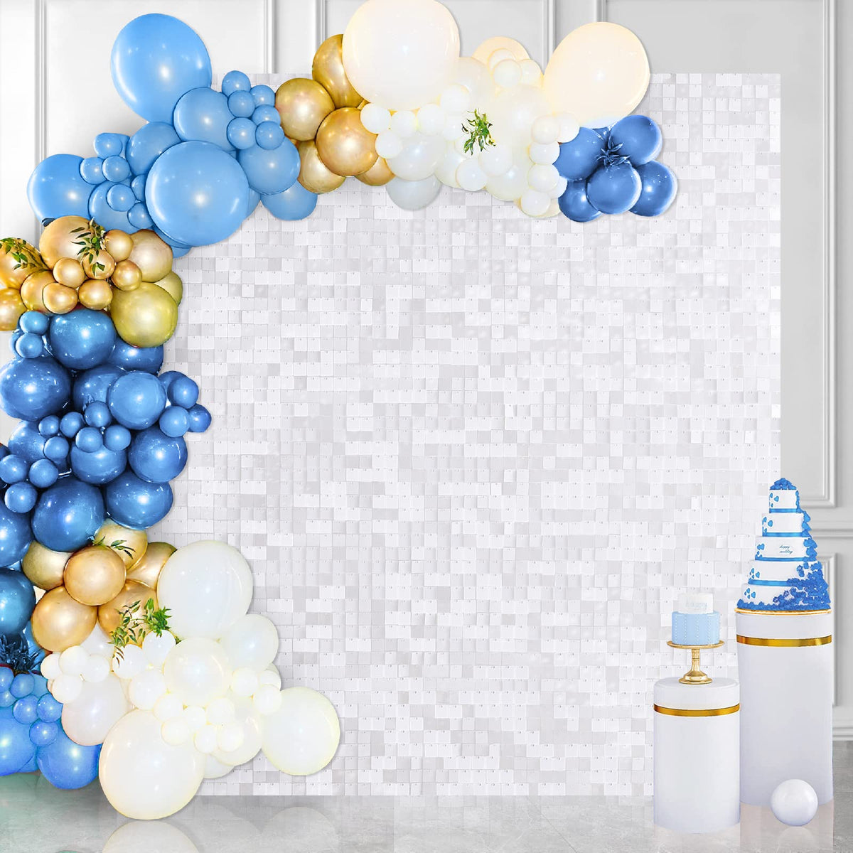 Shimmer Wall Backdrop For Party 24 Panels Square Sequin Wall Panels White Shimmer Backdrop Wall Decor For Birthday Decorations
