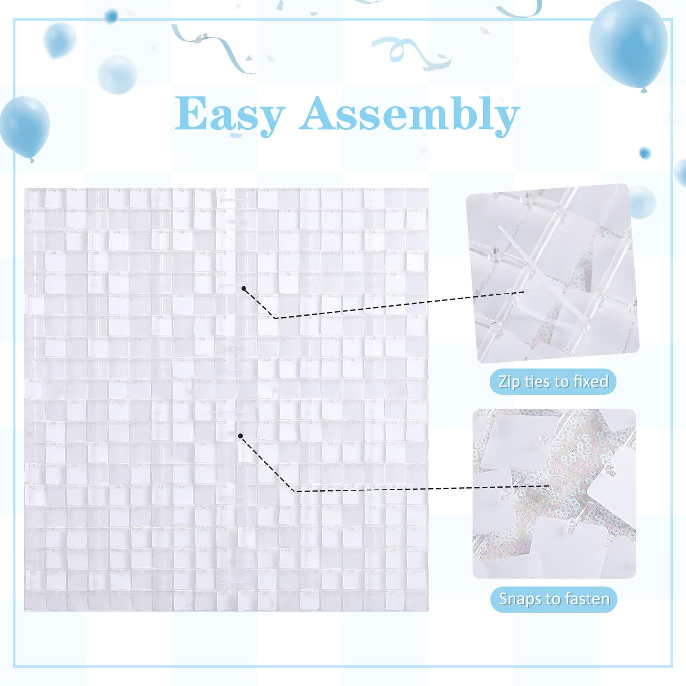 Q: Are the shimmer panels easy to install?A: Yes, the shimmer backdrop panels are designed for easy installation. Each panel comes pre-assembled, allowing you to quickly configure and mount them wherever you wish.