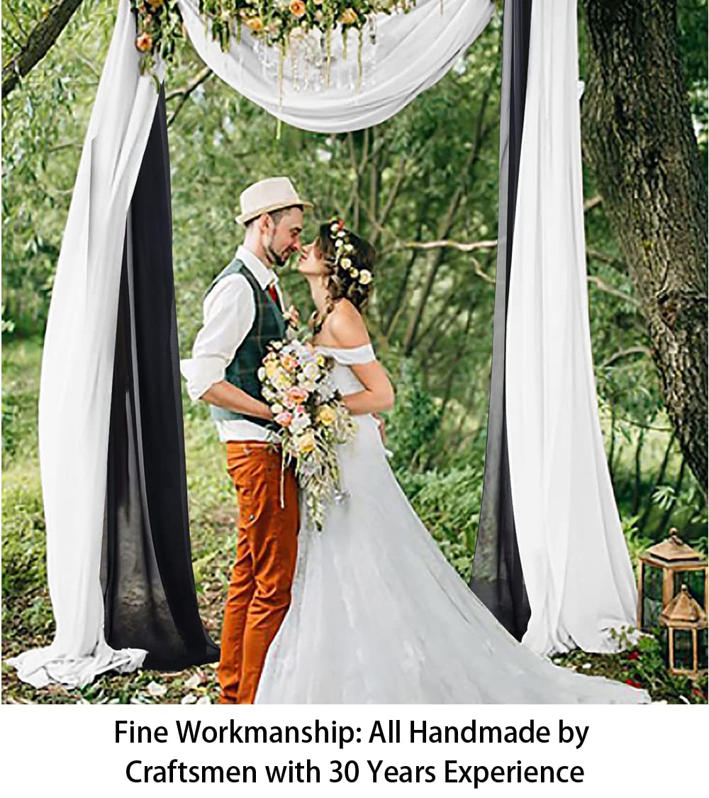Shinybeauty Wedding Arch Draping Fabric Black & White 2 Panels 29'' X19Ft Long Chiffon Drapes Wedding Archway Sheer Fabric Drape