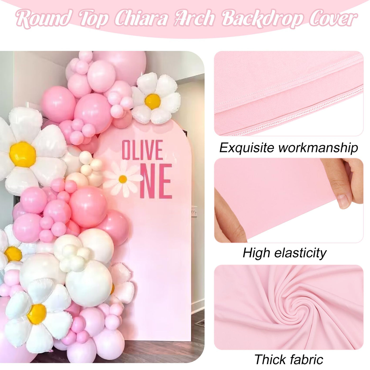 Spandex Fitted Wedding Arch Cover 7.2Ft Pink Arch Backdrop Cover, Round Top Chiara Backdrop Stand Covers For Wedding Birthday Pa