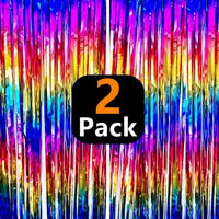 Sparkly Rainbow Gradient Metallic Tinsel Foil Fringe Curtains For Party Decorations Photo Backdrop Christmas Thanks Giving Day New Years Eve Bachelorette Birthday Graduation Wedding Baby Shower Party Supplies -2 Pcs