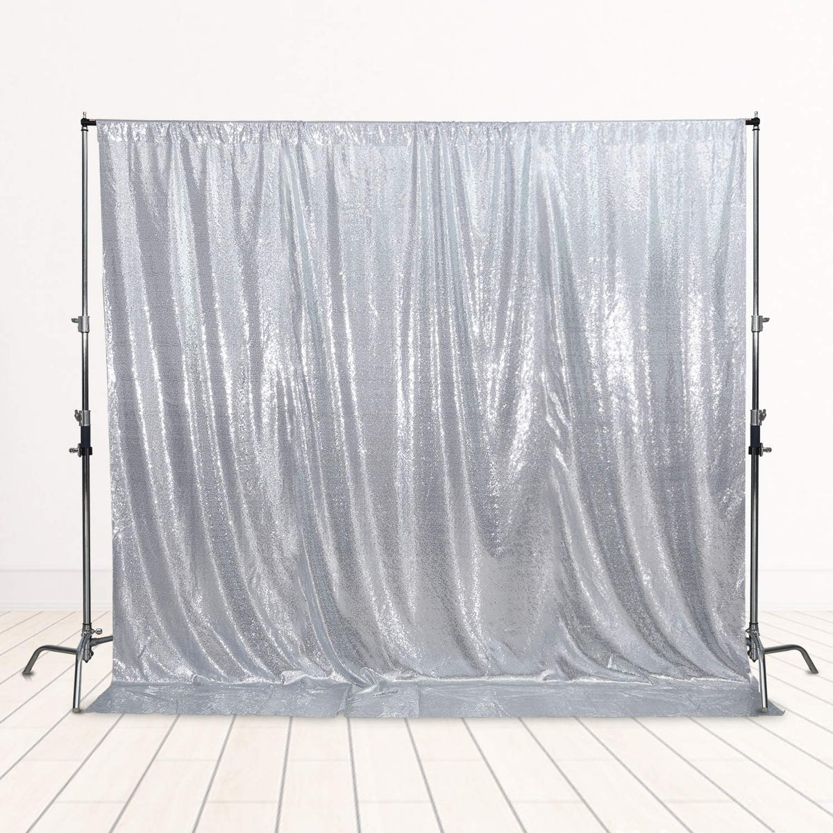 Q: Is the SquarePie Sequin Backdrop see-through?A: No, the SquarePie Sequin Backdrop is designed with a thick satin backing, making it non-transparent. This property blocks about 99% of light, ensuring that no scenes behind the curtain are visible in your photographs.