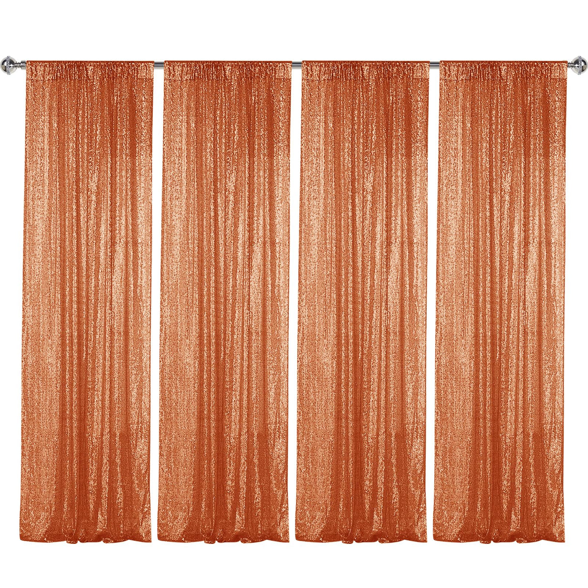 Sugargirl Orange Sequin Backdrop Curtain 4 Panels 2Ftx8Ft Glitter Orange Background Drapes Sparkle Photography Backdrop For Part