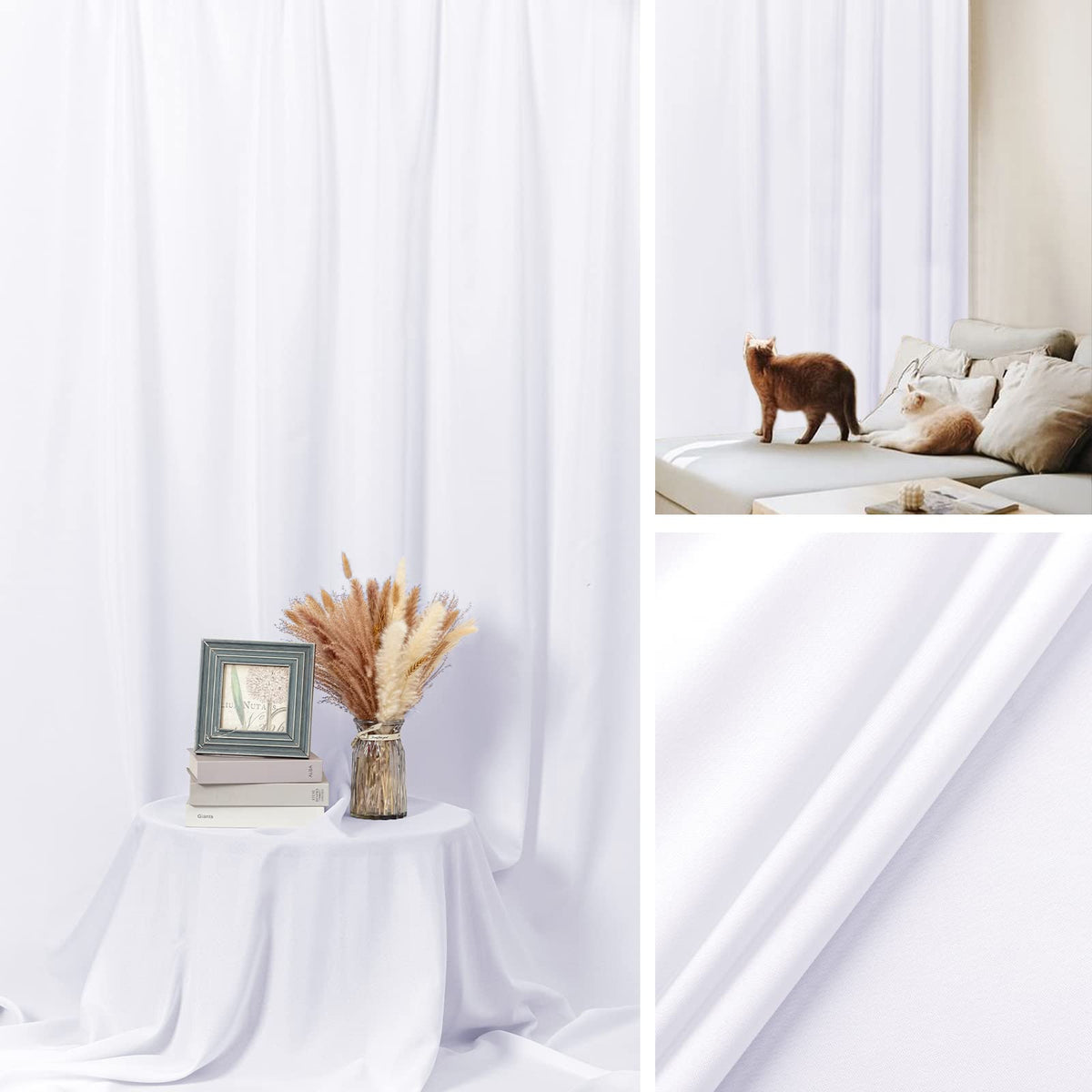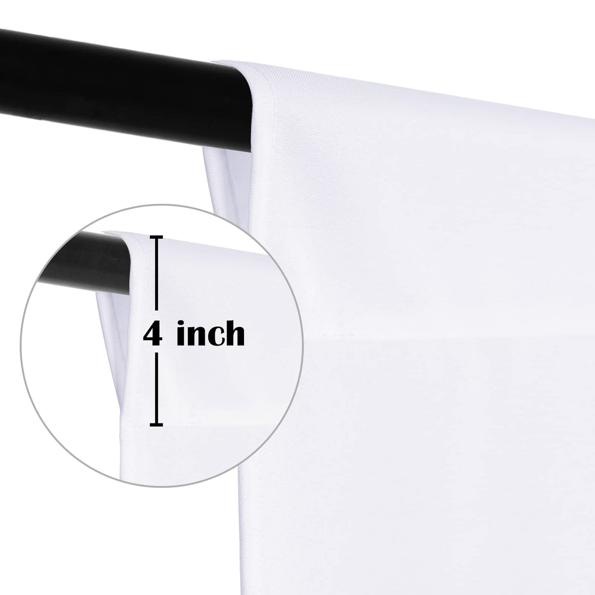 Package Include: 1Pc 8Ft Wide X 10Ft High Density Solid White Backdrop Background. Tips: Only The Backdrop, No Include A Stand. | Easy To Install: The Photo Backdrop Is Easy To Install Because Of The 4-Inch Wide Rod Pocket On The Top. Please Note That Only The Short Edge Has A Rod Pocket. | Durable Material: This Photography Backdrop Is Made Of High Quality Polyester Fabric, Which Can Offer A Good Effect For Portrait Photos, Photography And Videos. This Material Is Also Seamless, Durable, Foldable, Easy To Keep Clean. | Wide Application: It Is Suitable For Parties, Weddings, Newborns, Television, Video Production, Home Decoration, Live Game, Interviews, Youtube, Tik Tok Etc, Also Perfect For Professional Photo Studios, Portrait And Product Photography Or Large-Scale Scene Shooting. | Care Instructions: This White Background Is Easy To Clean, It Can Be Washed With Warm Water And A Gentle Detergent Or Machine. If Necessary, Please Iron The Surface With Steam Iron But Not Dry Iron, And The Ironing Temperature Is Recommended To Be Below 50