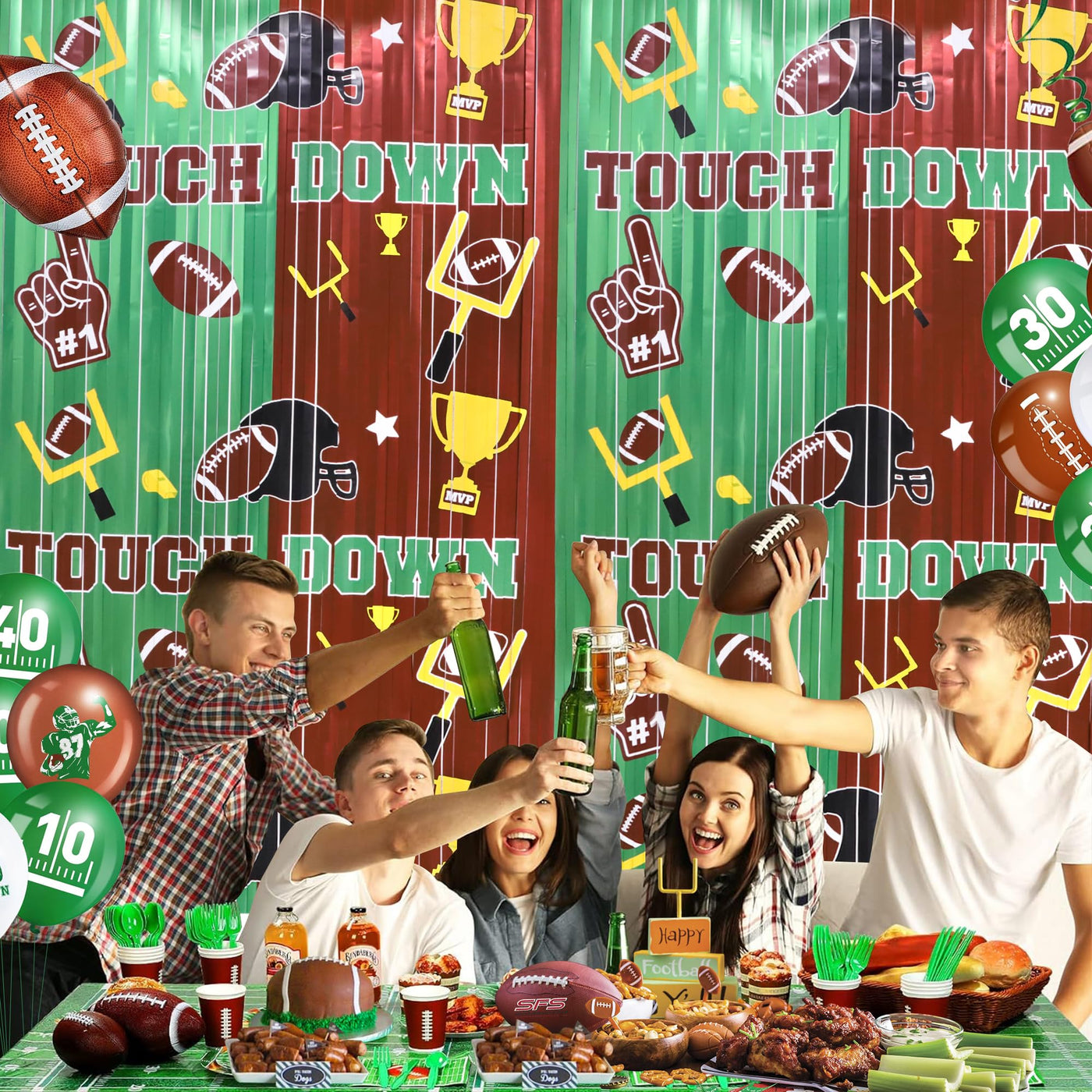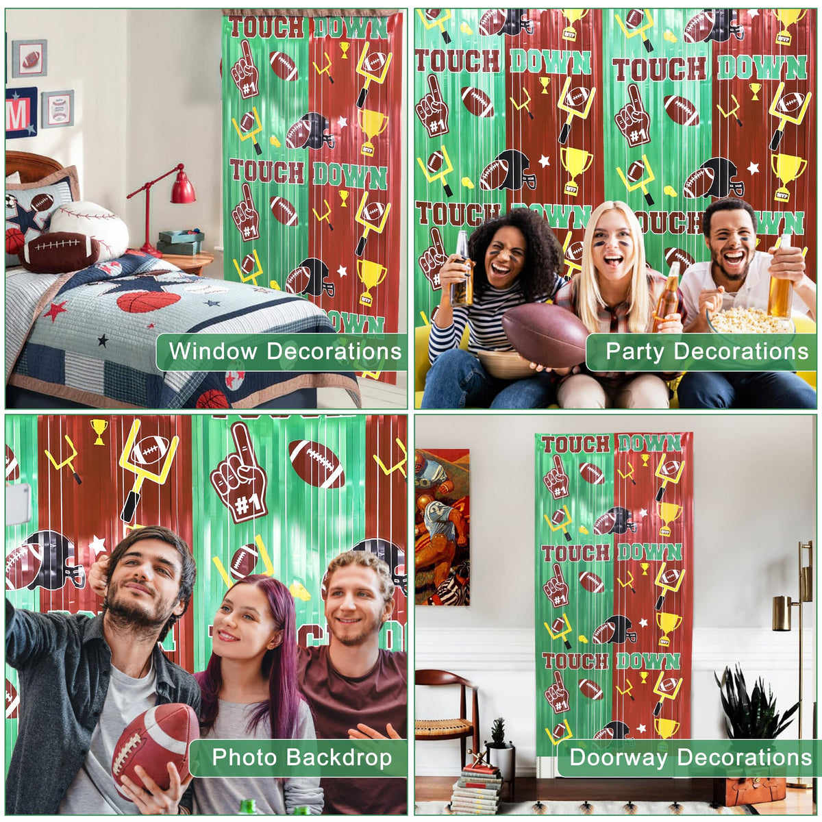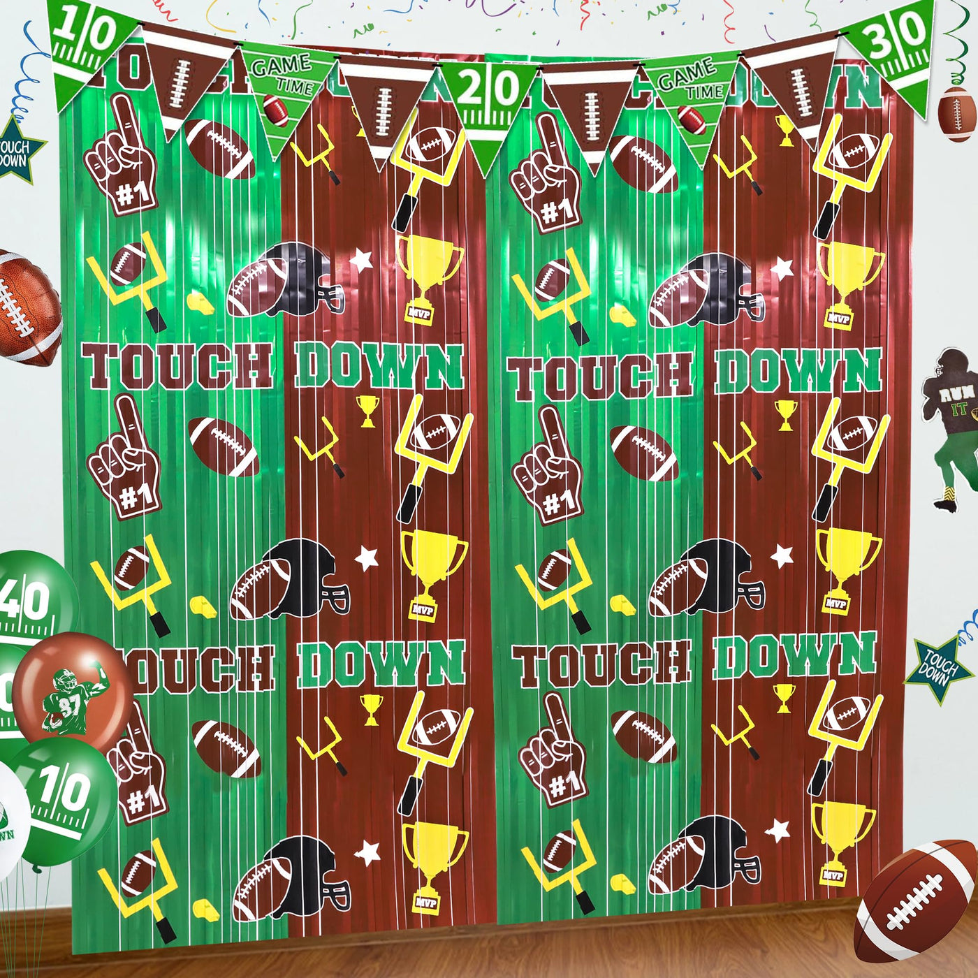 Superbowl Football Party Decorations Foil Fringe Curtains, 2 Pack 3.3X6.6Ft Green Brown Tinsel Backdrop Super Bowl Sunday Night