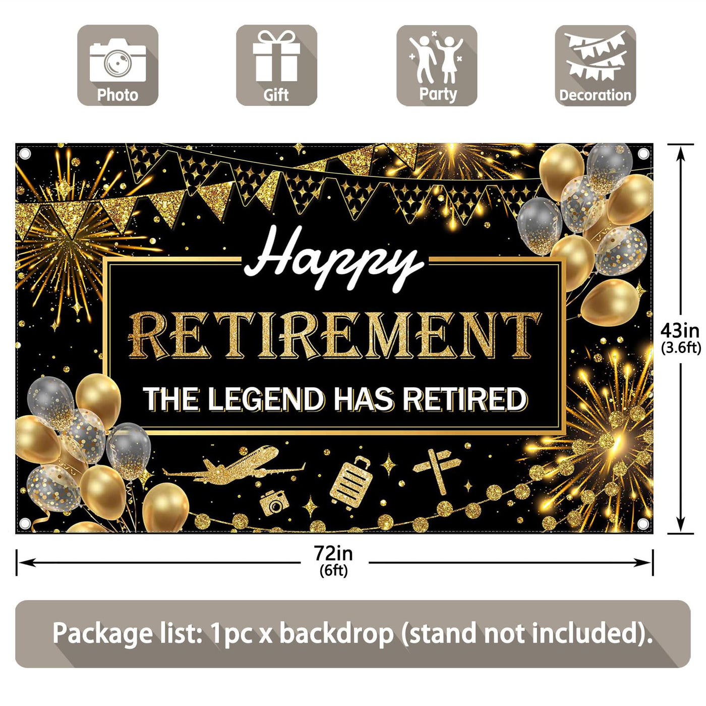 Q: What is the size of the Swepuck backdrop?A: The Swepuck backdrop measures 72 inches by 43 inches (6 feet by 3.6 feet), making it suitable for a variety of events such as class reunions and parties.
